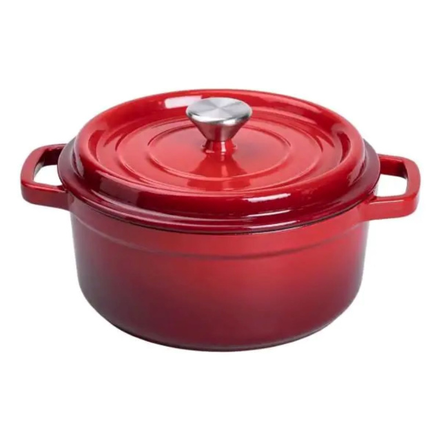 Чугунная кастрюля с эмалированным покрытием, 3 л – надежная и стильная посуда для запекания, тушения и длительного томления. Чугунная основа равномерно распределяет тепло и долго сохраняет его, обеспечивая идеальные условия для приготовления насыщенных и ароматных блюд. Основные характеристики: Объем: 3 л; Диаметр: 24 см; Диаметр дна: 19 см; Высота: 15 см; Высота кастрюли без крышки: 10 см; Толщина: 5 мм; Материал: чугун; Покрытие: эмаль; Тип крепления ручек: литий; Тип плиты: все типы. Приемущества: Эмалированное покрытие защищает от окисления, предотвращает пригорание и упрощает уход. Чугунная конструкция сохраняет тепло дольше, обеспечивая равномерное приготовление без резких перепадов температуры. Диаметр 24 см обеспечивает оптимальную площадь нагрева, удобную для приготовления разнообразных блюд. Подходит для всех типов плит: газовых, электрических, индукционных, а также для использования в духовке. Прочные литые ручки удобны для переноски и устойчивы к высоким температурам. Классический дизайн и функциональность делают эту кастрюлю незаменимой на кухне, помогая создавать блюда ресторанного уровня в домашних условиях.