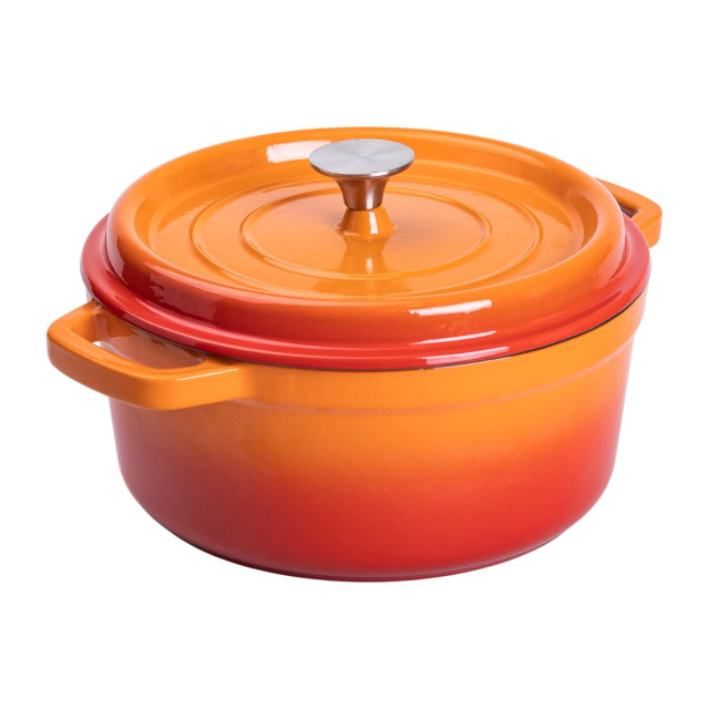 Кастрюля чугунная эмалированная 3 л с крышкой Ø24 см Оранжевая HP-1-3O