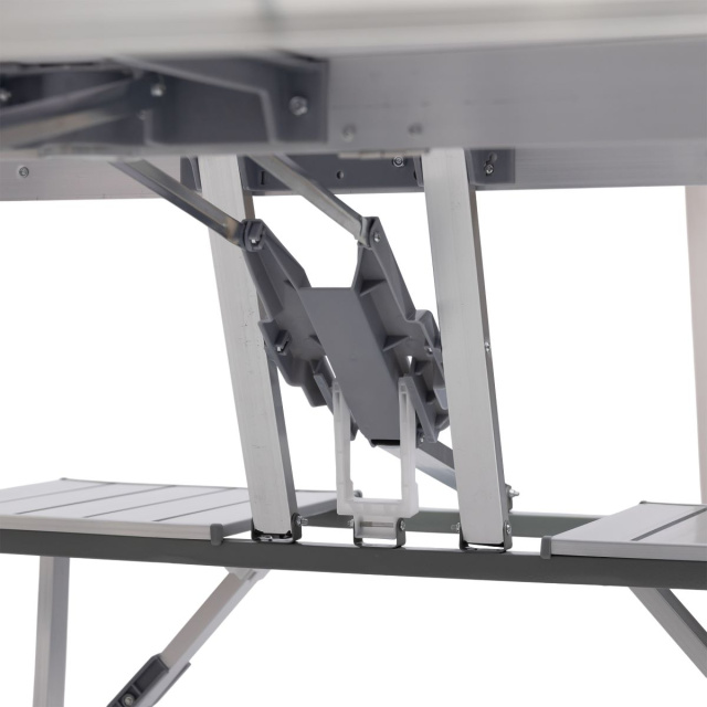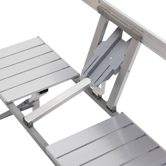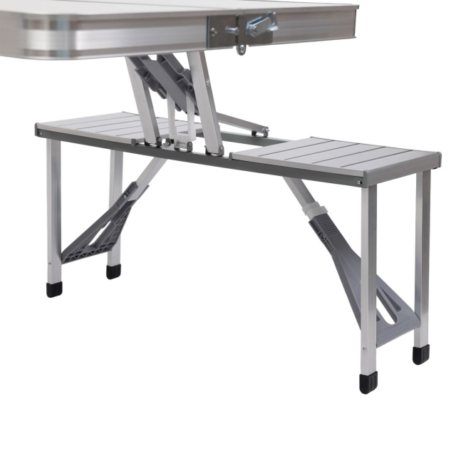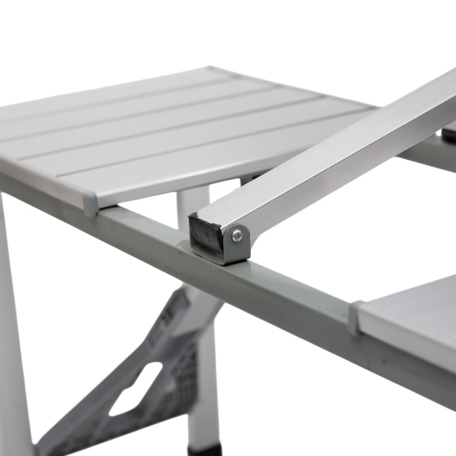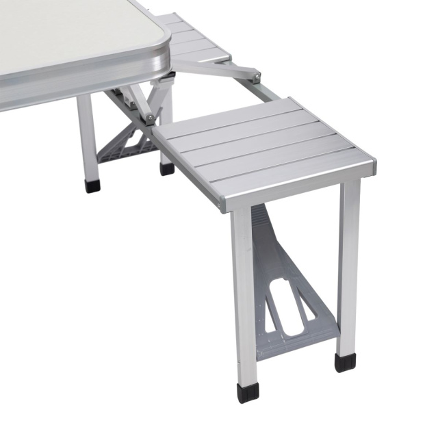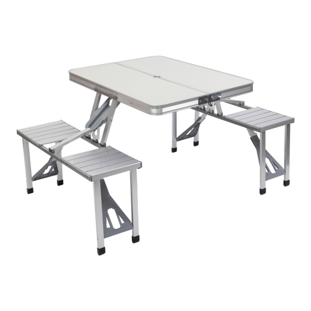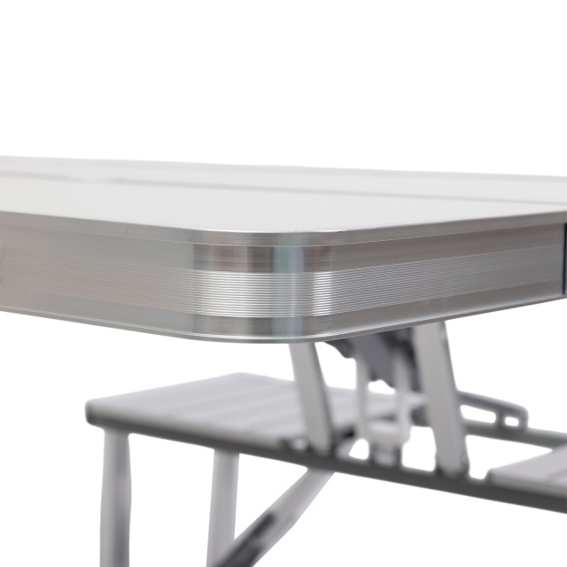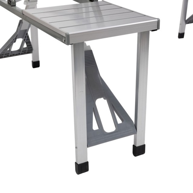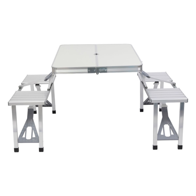 Туристический складной набор: стол и 4 стула – идеальный выбор для отдыха на природе Этот универсальный туристический комплект – незаменимый помощник для любителей активного отдыха, кемпинга, рыбалки, пикников и путешествий. В набор входит удобный складной стол и четыре компактных стула, которые обеспечат комфорт во время отдыха на свежем воздухе. Благодаря своей функциональности, прочности и практичности, этот комплект станет вашим надежным спутником в любых условиях! Основные характеристики: Размер стола в разложенном состоянии: 86х67х67 см; Размер стола в сложенном состоянии: 86х34х10 см; Размер стульев: 29х27.5х40 см; Материал столешницы стола: фанера; Материал каркаса стола: алюминий; Материал стульев: алюминий; Рекомендуемая нагрузка: 35 кг. Комплектация: Стол; 4 стула; Кейс для транспортировки и хранения. Преимущества туристического набора: Высокое качество материалов – каркас изготовлен из прочного алюминия, а столешница выполнена из качественной фанеры, что гарантирует долговечность и устойчивость к внешним воздействиям. Компактность и удобство транспортировки – набор легко складывается в удобный чемодан, благодаря чему его можно без проблем переносить и хранить. Функциональность и практичность – конструкция стола и стульев продумана до мелочей. Сиденья расположены по бокам, что обеспечивает свободный доступ к столу, не мешая окружающим. Дополнительные возможности – в центре стола предусмотрено специальное отверстие для установки зонта, что делает использование набора еще более комфортным в солнечную или дождливую погоду. Простота в уходе – все элементы набора легко чистятся и не требуют сложного ухода. Этот складной туристический набор станет вашим лучшим выбором для отдыха на природе. Его легкость, прочность и компактность делают его идеальным решением для семейных поездок, выездов с друзьями и активного отдыха на свежем воздухе. Наслаждайтесь комфортом где угодно – будь то лес, пляж или дача!