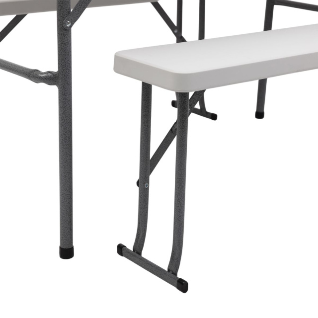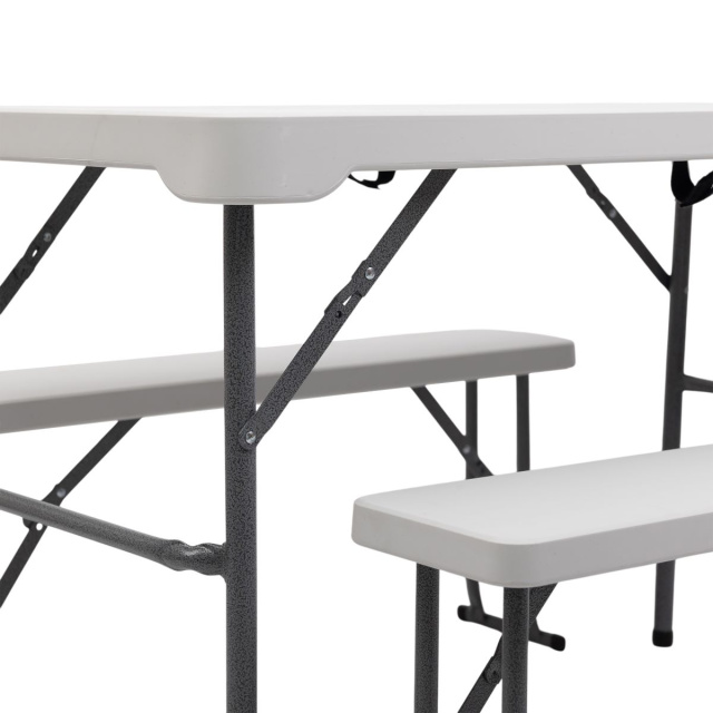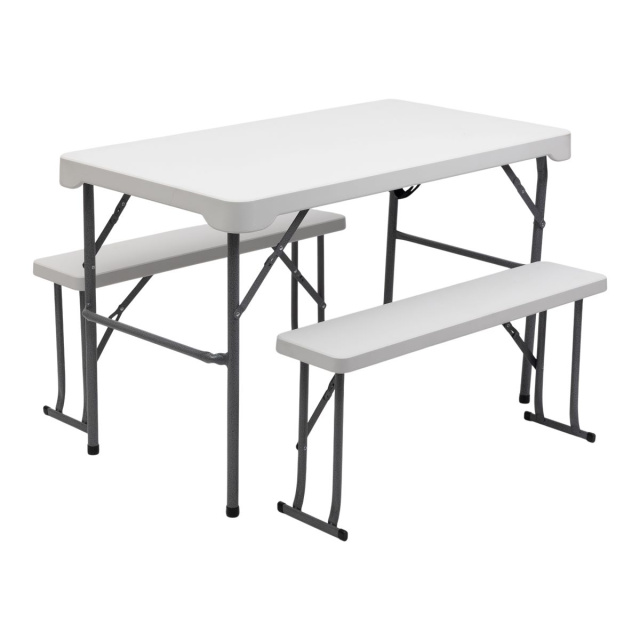 Этот комплект туристической мебели идеально подходит для отдыха на природе, кемпинга, дачи, ярмарок рыбалки. Он сочетает в себе удобство, мобильность и прочность, обеспечивая комфортное размещение за столом нескольких человек. Столешница изготовлена из прочного пластика, устойчивого к влаге и механическим повреждениям. Каркас стола и лавочек выполнен из алюминия, что делает конструкцию легкой, но при этом надежной. Основные характеристики мебели для пикника: Размер стола в разложенном виде: 112×61×72 см; Размер стола в сложенном виде: 112×61×8 см; Размер лавочки: 90×20×41 см; Максимальная нагрузка на стол: 35 кг; Материал стола: алюминий, пластик; Материал лавочки: алюминий, пластик. Преимущества набора складной мебели для кемпинга: Складная конструкция занимает минимум места при хранении и транспортировке; Алюминиевый каркас обеспечивает надежность, а пластиковая столешница устойчива к влаге и легко моется; Удобные лавочки обеспечивают комфортное сидение и компактно складываются вместе со столом; Простота сборки легко и быстро устанавливается одним человеком. Мобильность в сложенном виде удобен для транспортировки, помещается в багажник автомобиля Этот набор станет отличным выбором для тех, кто ищет практичную и удобную мебель для отдыха на свежем воздухе.