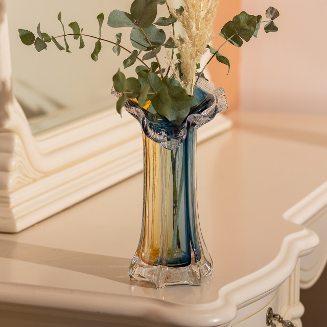 Эта ваза выполнена из высококачественного стекла, что гарантирует ее прочность, долговечность и прозрачность. Ее уникальный дизайн сочетает в себе уникальные формы подчеркнут красоту любого букета. Благодаря своей универсальности, ваза идеально впишется в интерьер дома, офиса, ресторана или гостиницы, добавляя утонченность и шарм в окружающее пространство. Основные характеристики: Материал: стекло; Объем: 500 мл; Диаметр: верхний - 5.5 см, нижний - 5.5 см; Высота: 29 см; Глубина: 20 см. Для ухода за вазой необходимо регулярно чистить ее от остатков воды и растений, использовать мягкие моющие средства и избегать абразивных материалов, чтобы не повредить поверхность стекла.