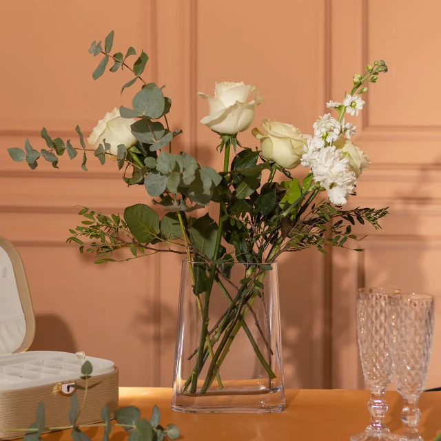 Стеклянная ваза для цветов прямоугольной формы изготовлена из прозрачного стекла высокого качества. Ваза имеет четкие геометрические линии и простой, элегантный дизайн, что позволяет ей органично вписываться в различные интерьеры. Основные характеристики: Материал: стекло; Объем: 0.420 л; Размер вазы: 9.5х5х15.8 см; Размер горлышка: 8.5х3.5 см; Размер основания: 12х5.5 см; Глубина: 13.5 см. Прямоугольная форма вазы обеспечивает удобство в размещении растений и позволяет создавать красивые и сбалансированные цветочные аранжировки. Ее плоская поверхность позволяет устойчиво держать вазу на различных поверхностях. Для ухода рекомендуется использовать мягкие моющие средства и избегать механических повреждений. Ваза легко чистится вручную, а ее гладкая поверхность позволяет быстро убирать пыль и загрязнения.