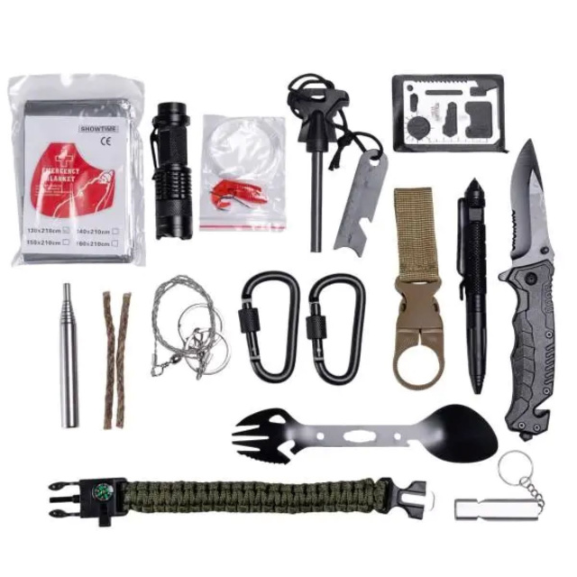 Набор туриста – это универсальный комплект для выживания, кемпинга, рыбалки, охоты и активного отдыха. Он содержит всё необходимое для комфортного пребывания в дикой природе, а также для экстренных ситуаций. Прочный пластиковый кейс защищает снаряжение от влаги и механических повреждений, а компактный размер 18х11х5 см позволяет легко разместить его в рюкзаке, машине или даже носить с собой в качестве тревожного набора. Основные характеристики: Размер: 18х11х5 см; Материал кейса: пластик. Комплектация туристического набора: спасательное одеяло; тактическая ручка; проволочная пила; нож для выживания; держатель для бутылки на пояс; фонарик; паракордовый браслет 6 в 1 (свисток, кресало, компас, скребок); набор для розжига костра (сильфон, кресало и огниво); мультитул карманный; 2 отвертки; компас; мини-фонарик; свисток; 2 стерильные салфетки одноразовые; стерильная салфетка из нетканого материала. Этот набор – идеальный спутник для путешественников, любителей экстремального отдыха и всех, кто хочет быть готовым к любой ситуации. Компактность, надежность и продуманная комплектация делают его отличным выбором как для личного пользования, так и в качестве подарка.