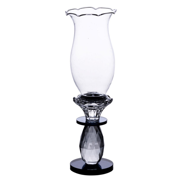 Верхняя часть подсвечника выполнена из прозрачного стекла и имеет волнообразный край, который придает ему элегантность и утонченность. Такой дизайн не только добавляет воздушности, но и способствует мягкому рассеиванию света, создавая теплую и уютную атмосферу. Основные характеристики: Материал: стекло; Высота: 25.5 см; Диаметр основания: 7 см; Диаметр под свечу: 5 см; Глубина: 11 см; Цвет: прозрачный с черными акцентами. Для чего подойдет? Декор дома – изящный элемент для гостиной, спальни или обеденной зоны. Романтическая атмосфера – мягкое мерцающее пламя в сочетании с изысканным стеклом создаст теплый уют. Сервировка стола – отлично впишется в праздничное убранство, будь то свадьба, юбилей или новогодний ужин. Подарок – стильный выбор для любителей утонченного интерьера.