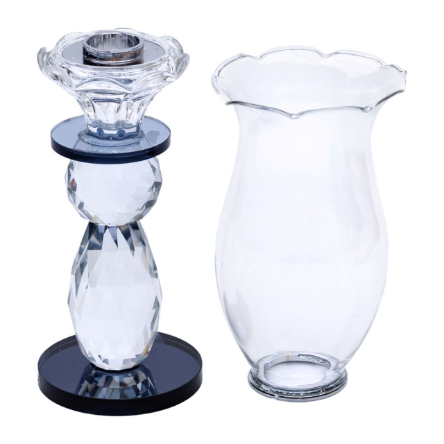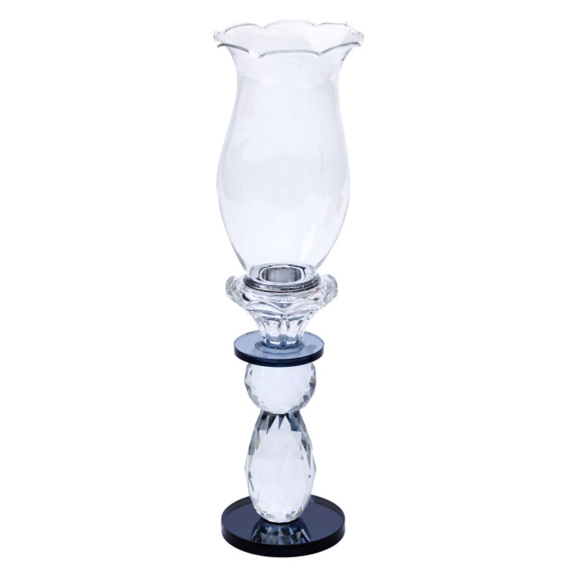 Верхняя часть подсвечника выполнена из прозрачного стекла и имеет волнообразный край, который придает ему элегантность и утонченность. Такой дизайн не только добавляет воздушности, но и способствует мягкому рассеиванию света, создавая теплую и уютную атмосферу. Основные характеристики: Материал: стекло; Высота: 29 см; Диаметр основания: 7 см; Диаметр под свечу: 5 см; Глубина: 11 см; Цвет: прозрачный с черными акцентами. Для чего подойдет? Декор дома – изящный элемент для гостиной, спальни или обеденной зоны. Романтическая атмосфера – мягкое мерцающее пламя в сочетании с изысканным стеклом создаст теплый уют. Сервировка стола – отлично впишется в праздничное убранство, будь то свадьба, юбилей или новогодний ужин. Подарок – стильный выбор для любителей утонченного интерьера.