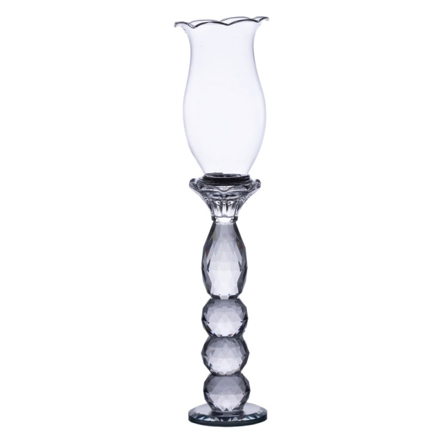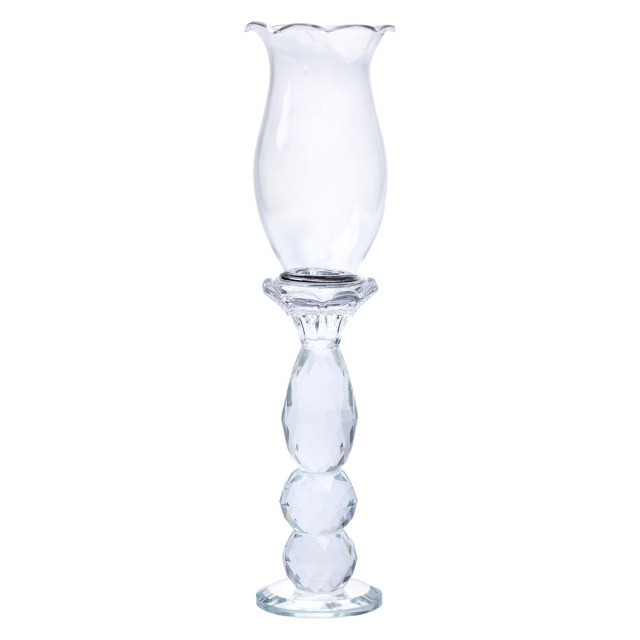 Этот подсвечник выполнен из гладкого и качественного стекла, что придает ему особенно легкий и воздушный вид. Его изящная форма сочетается с классическим стилем, а прозрачность делает его универсальным элементом декора для любого интерьера. Ножка подсвечника составлена из двух стеклянных сфер, соединенных между собой и плавно переходящих в устойчивое круглое основание. Вся конструкция выглядит цельной, гармоничной и утонченной. Верхняя часть – это высокий стеклянный плафон с волнообразным краем, который напоминает лепестки цветка и красиво рассеивает свет. Основные характеристики: Материал: стекло; Высота: 31.5 см; Диаметр основания: 7 см; Диаметр под свечу: 5 см; Глубина: 11 см; Цвет: прозрачный. Для чего подойдет? Декор дома – изящный элемент для гостиной, спальни или обеденной зоны. Романтическая атмосфера – мягкое мерцающее пламя в сочетании с изысканным стеклом создаст теплый уют. Сервировка стола – отлично впишется в праздничное убранство, будь то свадьба, юбилей или новогодний ужин. Подарок – стильный выбор для любителей утонченного интерьера.