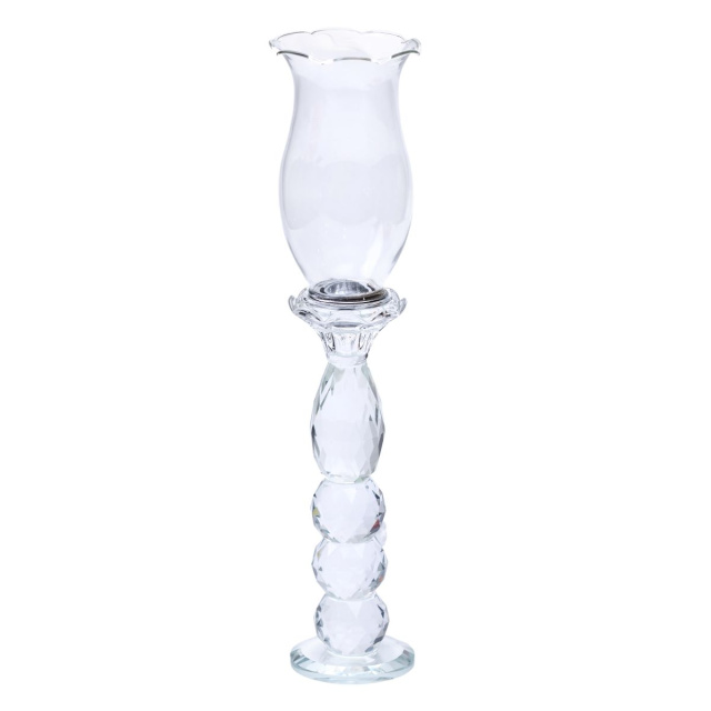 Этот подсвечник выполнен из гладкого и качественного стекла, что придает ему особенно легкий и воздушный вид. Его изящная форма сочетается с классическим стилем, а прозрачность делает его универсальным элементом декора для любого интерьера. Ножка подсвечника составлена из двух стеклянных сфер, соединенных между собой и плавно переходящих в устойчивое круглое основание. Вся конструкция выглядит цельной, гармоничной и утонченной. Верхняя часть – это высокий стеклянный плафон с волнообразным краем, который напоминает лепестки цветка и красиво рассеивает свет. Основные характеристики: Материал: стекло; Высота: 34.5 см; Диаметр основания: 7 см; Диаметр под свечу: 5 см; Глубина: 11 см; Цвет: прозрачный. Для чего подойдет? Декор дома – изящный элемент для гостиной, спальни или обеденной зоны. Романтическая атмосфера – мягкое мерцающее пламя в сочетании с изысканным стеклом создаст теплый уют. Сервировка стола – отлично впишется в праздничное убранство, будь то свадьба, юбилей или новогодний ужин. Подарок – стильный выбор для любителей утонченного интерьера.