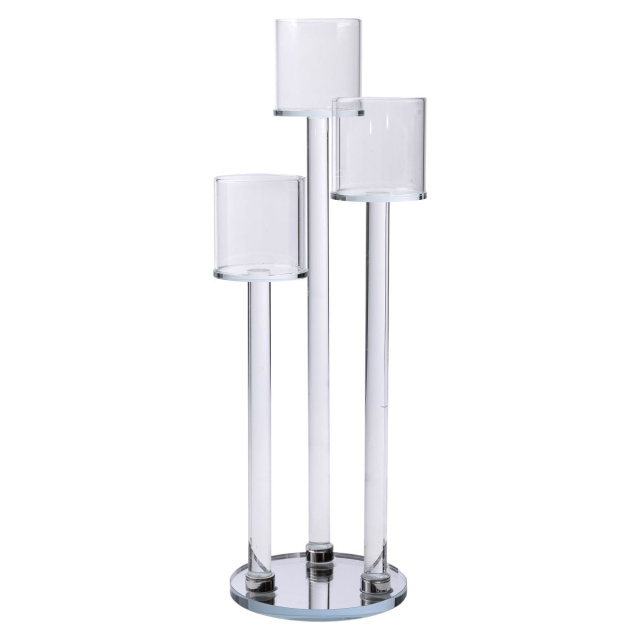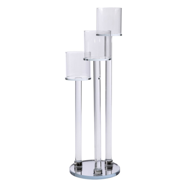 Современный и элегантный подсвечник с трёхуровневой конструкцией станет эффектным элементом декора в любом интерьере. Прозрачные цилиндрические держатели для свечей расположены на разной высоте, создавая объёмную композицию и визуальную динамику. Зеркальное основание добавляет блеска и подчёркивает чистоту линий. Такой подсвечник станет ярким акцентом на праздничном столе или зоне отдыха. Основные характеристики подсвечника на ножке: Материал: стекло; Высота: 37.5 см; Диаметр: 12 см; Диаметр под свечу: 5.5 см. Особенности стеклянного подсвечника на 3 свечи: Три стеклянных держателя разной высоты Современный минималистичный дизайн; Подходит для классических или электронных свечей; Прочное и устойчивое основание; Универсальное применение – интерьер, мероприятия, фотозоны; Легко вписывается в стиль лофт, модерн, сканди. Этот стеклянный подсвечник на три свечи — воплощение элегантности и современного стиля. Он не только наполнит пространство мягким светом, но и станет выразительным элементом декора, подчёркивающим ваш вкус и любовь к изысканным деталям. Идеальное сочетание простоты форм и утончённости — для дома, мероприятий и особых случаев.