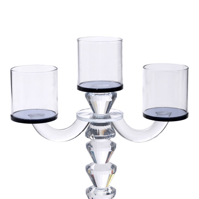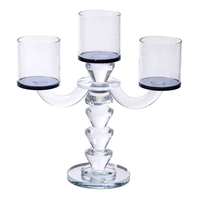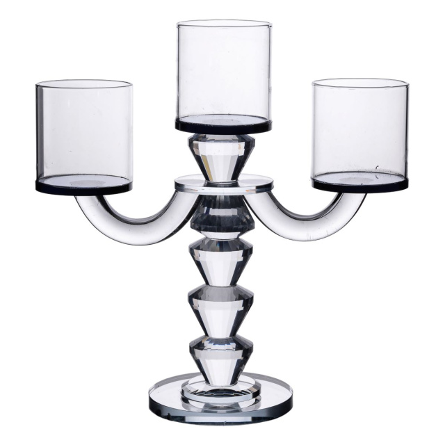 Утончённый стеклянный канделябр на три свечи станет элегантным элементом декора в современном интерьере. Прозрачные цилиндрические колбы, расположенные на плавно изогнутых держателях, подчёркивают простоту форм и изысканность композиции. Зеркальное основание и контрастные акценты создают эффект глубины и отражения, усиливая визуальное восприятие. Основные характеристики канделябра: Материал: стекло; Размер: 22×9×23 см; Глубина подсвечника: 6 см; Диаметр под свечу: 5.5 см. Особенности стеклянного подсвечника на 3 свечи: Контраст чёрных и прозрачных элементов добавляет глубины; Идеально подходит для свадеб, банкетов, фотозон; Легко комбинируется с другими элементами декора. Этот стеклянный канделябр на три свечи — идеальный выбор для тех, кто ценит лаконичный стиль и элегантные акценты. Он гармонично дополнит как повседневный интерьер, так и праздничную сервировку, придавая пространству уют и нотку утончённости.