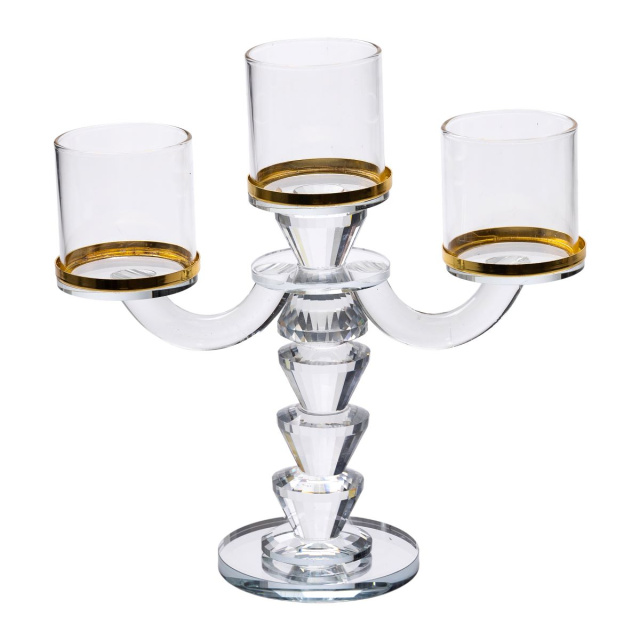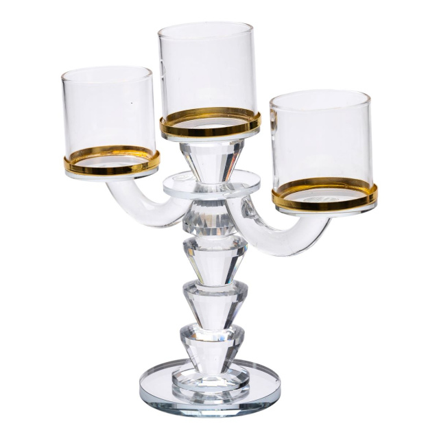Этот изысканный канделябр на три свечи станет стильным акцентом в интерьере, объединяя в себе классику и современность. Прозрачные цилиндрические колбы с благородной золотистой окантовкой подчёркивают утончённость дизайна. Изогнутые держатели и зеркальное основание придают композиции изящество и создают эффект глубины и сияния. Основные характеристики канделябра: Материал: стекло; Размер: 23×9×23.5 см; Глубина подсвечника: 6 см; Диаметр под свечу: 5.4 см. Особенности стеклянного подсвечника на 3 свечи: Золотистая отделка подчёркивает премиальность; Элегантная форма — идеально для праздников и фотозон; Легко сочетается с другими декоративными элементами; Уместен в интерьере от классики до ар-деко. Этот стеклянный канделябр на три свечи с золотистыми деталями — прекрасный выбор для тех, кто ценит роскошь в деталях. Он наполнит интерьер тёплым светом и изысканной атмосферой, идеально дополняя как повседневную обстановку, так и праздничное оформление.
