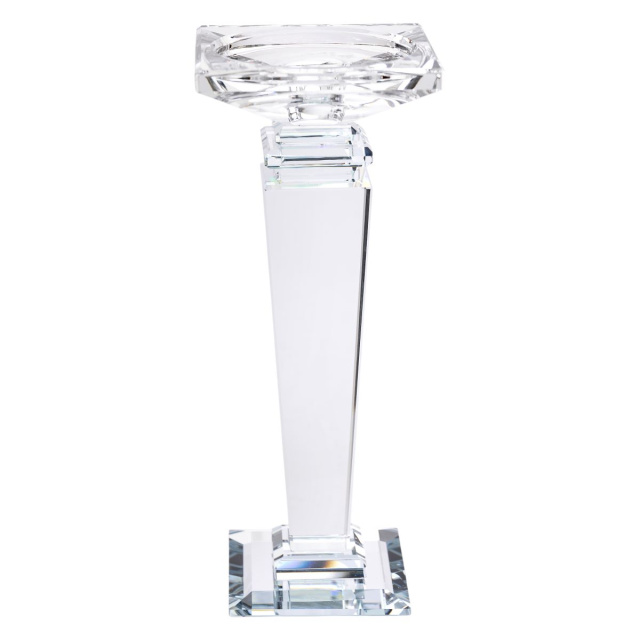 Этот декоративный подсвечник выполнен из прозрачного стекла и отличается строгой геометрией и выразительным силуэтом. Его дизайн вдохновлён архитектурными формами: высокая ножка с гранями напоминает колонну, а массивная квадратная чаша добавляет солидности и блеска. Основные характеристики: Материал: стекло; Размер: 9.5×9.5×24 см; Диаметр под свечу: 2.5 см; Глубина: 2 см; Цвет: прозрачный. Особенности: Эстетичный дизайн: Прозрачное стекло и лаконичная форма делают подсвечник стильным акцентом в любом интерьере. Создаёт атмосферу уюта: Мягкий свет свечи, проходящий через стекло, наполняет пространство теплом и спокойствием. Отличная идея для подарка: Идеален для праздников, новоселий или романтических вечеров. Универсальность: Подходит для гостиной, спальни, ванной, террасы или праздничного стола. Простота в уходе: Достаточно протереть мягкой тканью — стекло легко очищается и сохраняет блеск. Этот стеклянный подсвечник — стильное решение для тех, кто ценит лаконичность и строгость формы. Его высокая, архитектурная конструкция добавит интерьеру глубины и света, а огонь свечи создаст красивые блики на гранях, усиливая атмосферу уюта и торжественности.