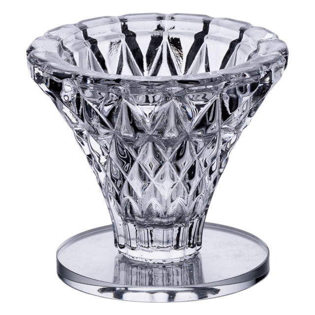 Компактный и элегантный подсвечник, выполненный из прозрачного стекла, станет стильным акцентом в любом интерьере. Верхняя часть выполнена в форме рельефной чаши с лепестковыми краями, что придаёт изделию декоративность и изысканность. Короткая ножка и устойчивое круглое основание делают подсвечник надёжным и удобным в использовании. Основные характеристики: Материал: стекло; Высота: 5.5 см; Диаметр: 5 см; Диаметр под свечу: 2 см; Глубина: 2 см; Цвет: прозрачный. Применение: Отлично подойдёт для свечей-таблеток или небольших цилиндрических свечей; Может использоваться как самостоятельный декор или в композициях из нескольких подсвечников разной высоты; Идеален для сервировки праздничного стола, свадеб, романтических вечеров или оформления интерьера в классическом и винтажном стиле. Этот стеклянный подсвечник на короткой ножке — это сочетание утончённого дизайна и практичности. Благодаря своему компактному размеру и выразительной форме он легко впишется как в торжественную обстановку, так и в повседневный уютный интерьер.