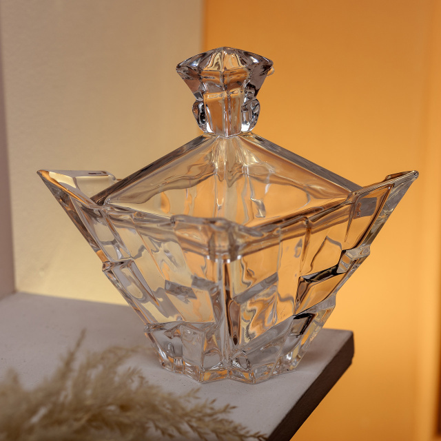 Сахарница с крышкой из стекла — это элегантный и стильный аксессуар для хранения сладостей или небольших угощений. Изготовленная из высококачественного хрусталя, она отличается непревзойденным блеском и изысканным дизайном, придавая интерьеру особую элегантность. Прозрачное стекло не только позволяет легко просматривать содержимое, но и создает ощущение легкости и утонченности. Основные характеристики: Материал: стекло; Размер: 16×16×19 см; Высота без крышки: 11.5 см; Форма: квадрат. Эта сахарница идеально подходит для сервировки на праздничных мероприятиях или для хранения мелких сладостей в повседневной жизни. Крышка помогает сохранять свежесть продуктов, делая изделие практичным и удобным в использовании. Такой аксессуар станет отличным подарком, совмещая в себе функциональность и эстетику. Небольшая и изящная, эта сахарница станет прекрасным дополнением к вашему домашнему декору, добавляя нотки элегантности и стиля.