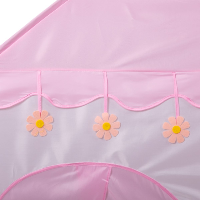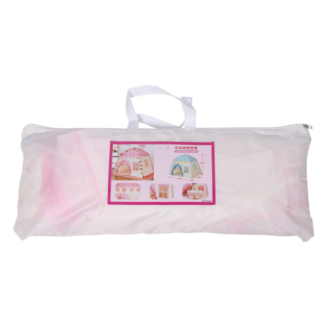 Эта очаровательная игровая палатка станет любимым уголком для вашего ребенка! Просторная, уютная и оформленная в нежных тонах, она создаст сказочную атмосферу для веселых игр. Благодаря легкому каркасу и прочному 100% полиэстеру, палатка устойчива к влаге и ультрафиолетовым лучам, поэтому её можно устанавливать как в помещении, так и на улице — в саду или на пикнике. Палатка выполнена в нежно-розовых оттенках с декоративными элементами — цветочками, волнистыми краями и окошками с красивыми "ставнями". Основные характеристики: Размеры в сложенном виде: 53×23×4 см; Размеры в разложенном виде: 125×100×120 см; Материал: 100% полиэстер; Количество окон: 3; Закрывающийся вход: шторки на завязках; Легкая сборка и разборка. Палатка быстро собирается и разбирается, не требуя специальных инструментов. Компактные размеры в сложенном виде (53×23×4 см) позволяют удобно хранить и транспортировать её. Подарите ребенку собственное волшебное пространство для игр и отдыха! Эта нежная и просторная игровая палатка станет его любимым местом для веселья, фантазий и уединения. Благодаря стильному дизайну с цветочками, декоративными воланами и окошками с занавесками, палатка выглядит как настоящий сказочный домик.