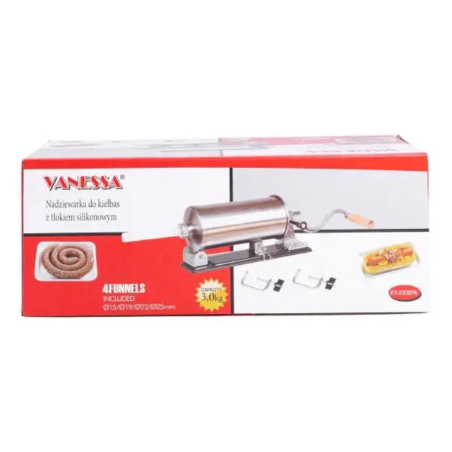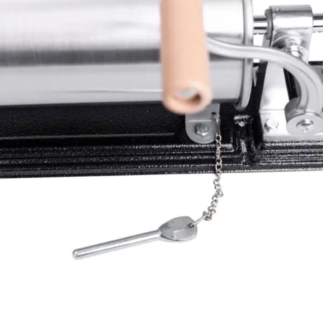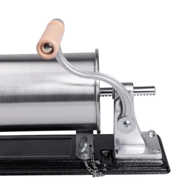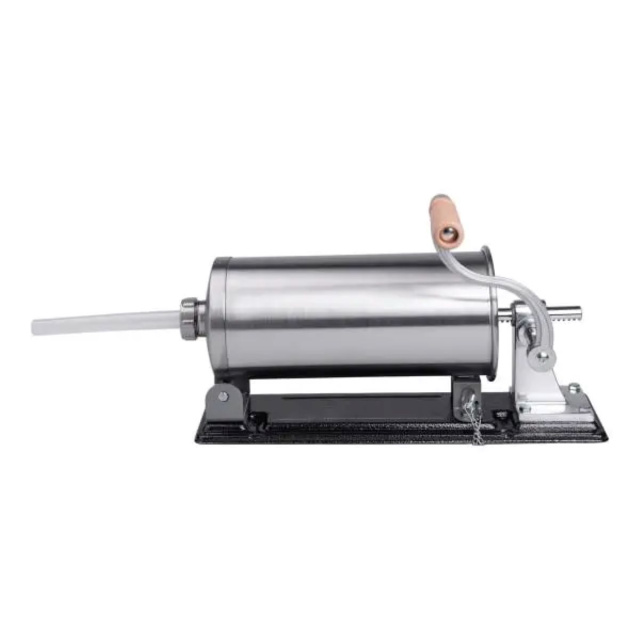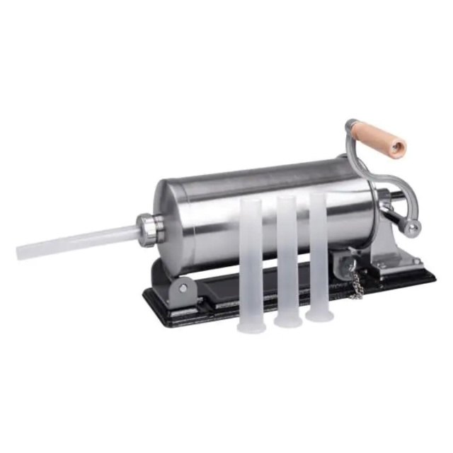 Ручной горизонтальный колбасный шприц — незаменимый инструмент для приготовления домашней колбасы и мясных изделий. Благодаря продуманному дизайну и качественным материалам, этот шприц идеально подходит как для домашнего использования, так и для небольших производств. Удобный в эксплуатации и легкий в обслуживании, он станет отличным помощником в приготовлении вкуснейших колбас. Основные характеристики: Размеры: 38 x 11 x 17 см; Объём цилиндра: 2 л; Количество насадок: 4 шт; Диаметр насадок: 13 мм, 17 мм, 20 мм, 22 мм; Диаметр цилиндра: 11.5 см; Материал корпуса: нержавеющая сталь; Материал насадок: пластик; Материал ручки: нержавеющая сталь + дерево; Крепление: струбцины для надежной фиксации шприца на рабочей поверхности; Ключ в комплекте: используется для закрепления шприца в корпусе и регулировки механизма для более удобного и безопасного процесса работы. Преимущества: Прочный металлический корпус устойчив к коррозии и механическим повреждениям; Нескользящее основание для надёжной фиксации на рабочей поверхности; Четыре сменные насадки позволяют готовить колбасы разных диаметров; Удобная ручка обеспечивает плавный и комфортный ход; Легко разбирается и очищается после использования. С шприцем для колбас вы легко превратите процесс приготовления в настоящее удовольствие. Он экономит время, упрощает работу с фаршем и позволяет добиться аккуратного, равномерного наполнения оболочки. Незаменимый инструмент для тех, кто ценит домашнее качество, натуральность и контроль над каждым ингредиентом.