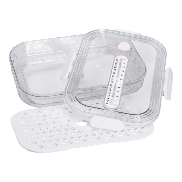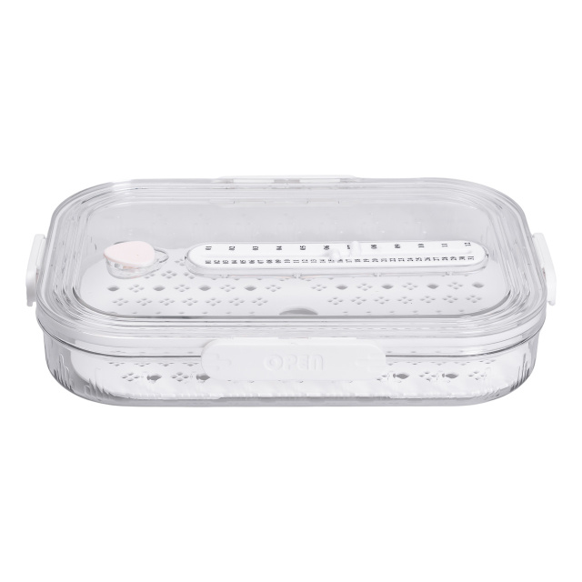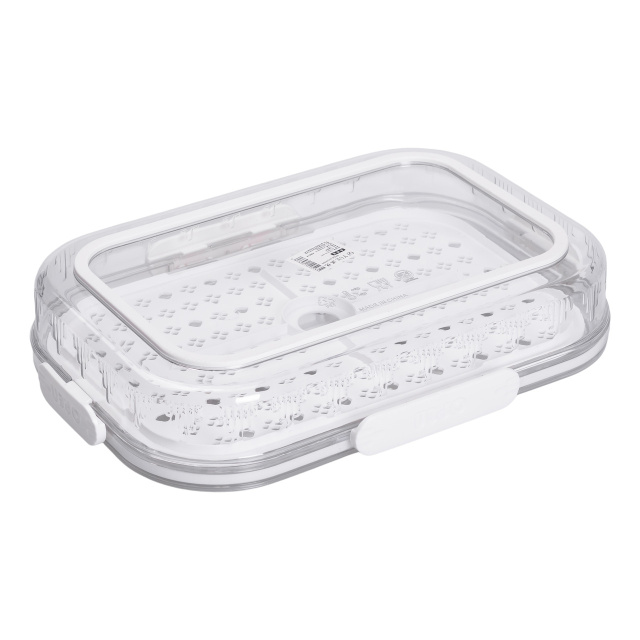 Многофункциональный контейнер для хранения еды с вентиляционной системой и регулировкой влажности, который поможет сохранить свежесть на дольше. Этот пищевой пластиковый контейнер продуман до мелочей: съёмная решётка не даёт продуктам соприкасаться с влагой, встроенный регулятор влажности на крышке создаёт нужный микроклимат, а удобный индикатор даты позволяет отметить день закладки продуктов — вы всегда будете знать, сколько они уже хранятся в холодильнике. Такой герметичный контейнер для еды станет незаменимым помощником на кухне — он экономит место, продлевает срок годности продуктов и помогает сохранять порядок. Основные характеристики: Размер: 32.5х22.5х6 см; Внутренний размер: 30х20х5 см; Объем: 1.5 л; Материал: пластик; Комплектация: контейнер, крышка на защелках вставка-сито с отверстиями, индикатор даты хранения, клапан регулировки влажности. Особенности: Клапан регулировки влажности на крышке — позволяет создать оптимальные условия хранения; Вставка-сито с отверстиями — отделяет продукты от лишней влаги и обеспечивает циркуляцию воздуха; Индикатор даты хранения — помогает отслеживать свежесть содержимого; Надёжная крышка с защёлками — обеспечивает герметичность и предотвращает попадание посторонних запахов; Прозрачный корпус — вы всегда видите, что внутри. Такой контейнер — это не просто емкость для хранения, а продуманный инструмент для заботы о качестве и свежести продуктов. Он подойдет как для домашнего использования, так и для загородных поездок или пикников.