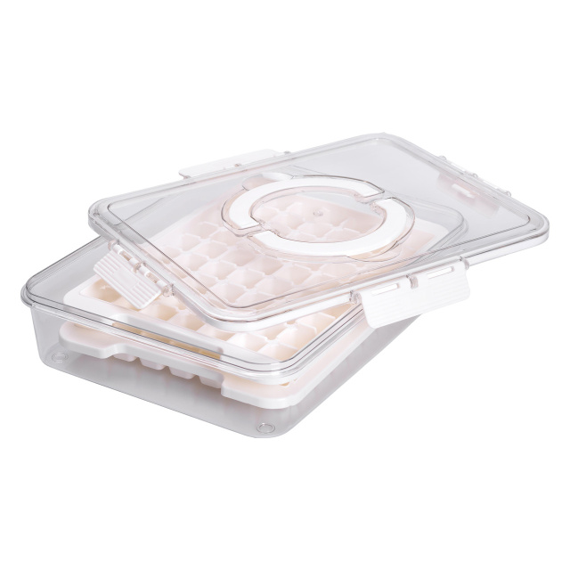 Пластиковый контейнер с ячейками предназначен для удобного замораживания фруктов, овощей, ягод, зеленой массы или кубиков льда. Благодаря разделенным отсекам можно хранить небольшие порции продуктов отдельно, не смешивая вкусы и запахи. Прозрачная крышка плотно закрывается с помощью боковых фиксаторов и имеет встроенные ручки, облегчающие перемещение контейнера даже с содержимым. Основные характеристики: Размер контейнера: 30.5х24х7 см; Внутренний размер контейнера: 28.5х21.5х5 см; Размер отсека: 20.5х6.5х5 см; Объем контейнера: 1.4 л; Количество отсеков для льда: 126 шт (2х63); Размер отсеков для льда: 2х2х1.5 см; Материал: пластик. Контейнер изготовлен из прочного пластика, пригодного для низкотемпературного хранения, без риска деформации. Компактная прямоугольная форма позволяет удобно разместить его в морозильной камере. Такой формат подходит как для длительного хранения сезонных заготовок, так и для ежедневного использования. Контейнер легко моется и повторно используется. Его можно использовать не только для заморозки, но и для порционного хранения готовых продуктов. Ячейки помогают экономно распределять порции и лучше организовать пространство в морозилке