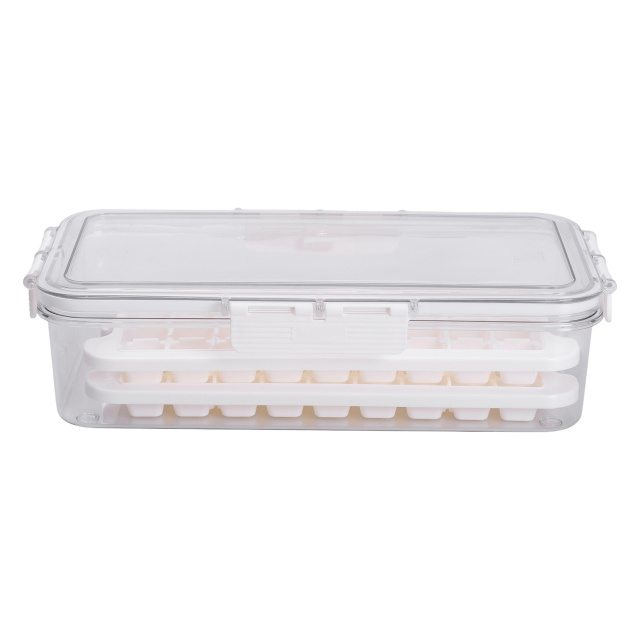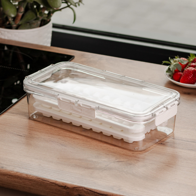 Пластиковый контейнер с ячейками предназначен для удобного замораживания фруктов, овощей, ягод, зеленой массы или кубиков льда. Благодаря разделенным отсекам можно хранить небольшие порции продуктов отдельно, не смешивая вкусы и запахи. Прозрачная крышка плотно закрывается с помощью боковых фиксаторов и имеет встроенные ручки, облегчающие перемещение контейнера даже с содержимым. Основные характеристики контейнера для льда с крышкой: Размер контейнера: 30.5х16х7.5 см; Внутренний размер контейнера: 28.5х14 см; Размер отсека: 20.5х6.5х5 см; Объем контейнера: 1 л; Количество отсеков для льда: 2х36 шт; Размер отсеков для льда: 2х2х1.5 см; Материал: пластик. Контейнер изготовлен из прочного пластика, пригодного для низкотемпературного хранения, без риска деформации. Компактная прямоугольная форма позволяет удобно разместить его в морозильной камере. Такой формат подходит как для длительного хранения сезонных заготовок, так и для ежедневного использования. Контейнер легко моется и повторно используется. Его можно использовать не только для заморозки, но и для порционного хранения готовых продуктов. Ячейки помогают экономно распределять порции и лучше организовать пространство в морозилке.