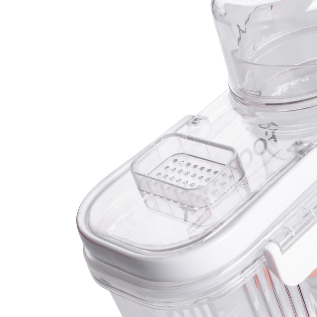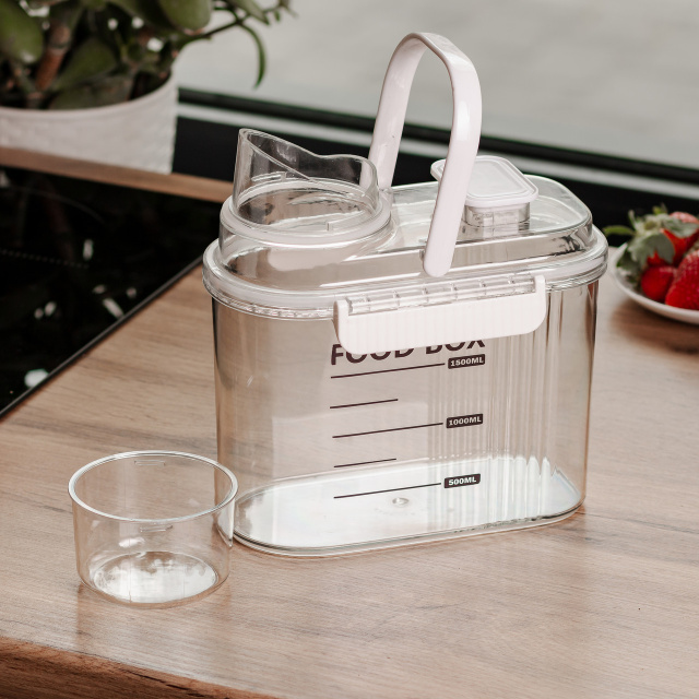 Контейнер предназначен для хранения сыпучих продуктов - круп, муки, сахара, макарон и других пищевых ингредиентов. Прозрачные стенки позволяют легко контролировать остаток содержимого, а мерные отметки на корпусе помогают точно отмерить количество продукта. Благодаря компактной форме контейнер удобно хранить в кухонном шкафу или на полке. Основные характеристики: Размер: 20х11х22 см; Объем контейнера: 2 л; Объем стаканчика: 200 мл; Материал: пластик. Для удобства пересыпания предусмотрен специальный носик в конструкции корпуса. Контейнер плотно закрывается герметичной крышкой, которая защищает продукты от влаги, насекомых и посторонних запахов. Ручка позволяет комфортно держать и переносить контейнер. Прочный пластик не впитывает запахов, устойчив к ежедневному использованию и легко очищается вручную или в посудомоечной машине.