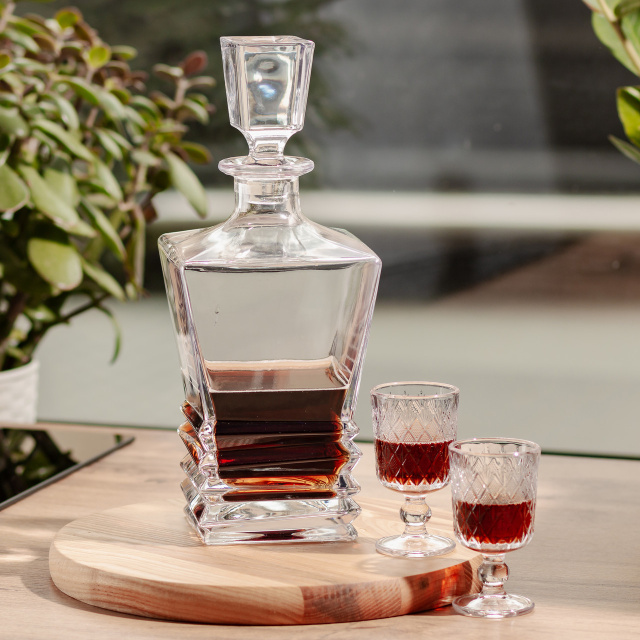 Штоф изготовлен из прозрачного толстого стекла, что обеспечивает устойчивость к механическим воздействиям и привлекательную подачу напитков. Его можно использовать для хранения и подачи виски, бренди, водки, а также других напитков. Плотная стеклянная пробка закрывает отверстие, препятствуя попаданию воздуха и сохраняя насыщенный аромат напитка. Основные характеристики: Материал: стекло; Объем: 1 л; Размер: 11×11×28 см; Вес: 1.6 кг. Особенности: Подходит для подачи крепких напитков. Плотная стеклянная пробка сохраняет аромат и свежесть напитка. Толстое стекло обеспечивает устойчивость и приятный вес в руке. Классическая форма подходит для сервировки в любом стиле — от домашнего ужина до праздничного стола. Удобен в использовании — легко наливать без проливов. Легко очищается вручную или в посудомоечной машине. Стильное решение для дома, бара или подарка. Конструкция графина с толстыми стенками позволяет дольше сохранять температуру жидкости. Гладкая внутренняя поверхность не впитывает красители и запахи, поэтому графин легко очищается после использования. Классическая форма обеспечивает удобное удержание в руке и контролируемое наливание без проливания.
