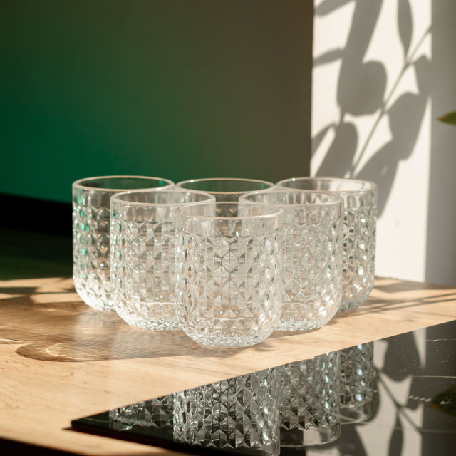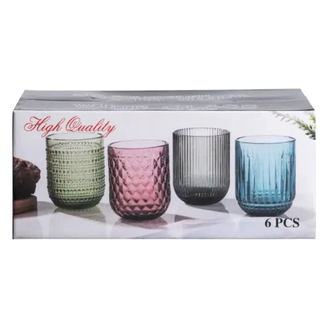 Стаканы изготовлены из прозрачного стекла, которое отличается чистотой и блеском. Изделия имеют фигурную форму с мягкими изгибами, что создает выразительный визуальный эффект. Благодаря плотной структуре стенок стаканы удобно лежат в руке и сохраняют температуру напитка немного дольше. Основные характеристики: Материал: стекло; Объем: 250 мл; Высота: 9 см; Верхний диаметр: 7 см; Нижний диаметр: 4.5 см; Назначение: для воды, соков, коктейлей и других напитков; Особенности: прочные, стойкие к повреждениям, легко моются. Форма стаканов подходит для подачи различных холодных напитков - воды, соков, лимонадов или коктейлей. Прозрачное стекло позволяет оценить цвет и консистенцию напитка, а гладкая внутренняя поверхность обеспечивает легкую очистку. Благодаря фигурному профилю изделия имеют приятный на ощупь захват. Стаканы практичны в повседневном использовании и уместны для сервировки праздничного стола. Их можно мыть вручную или в посудомоечной машине. Посуда для тех, кто предпочитает сочетание функциональности и лаконичного дизайна.
