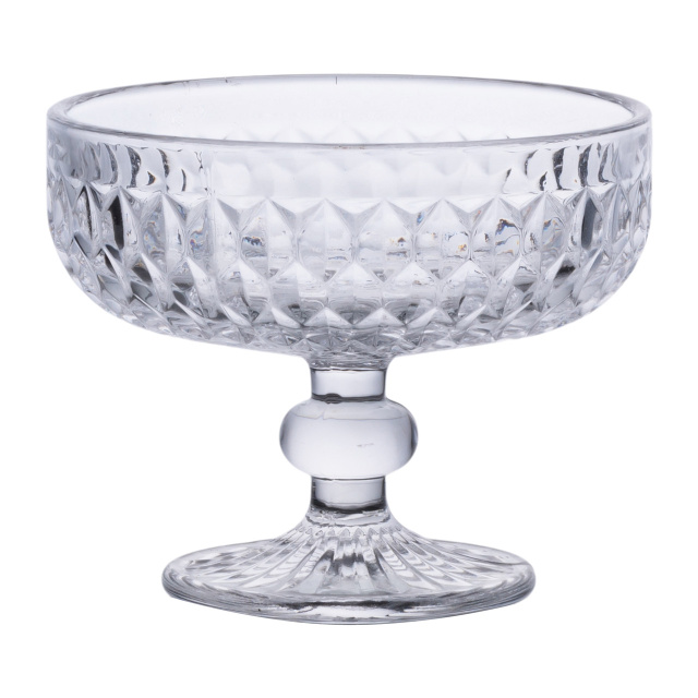 Креманки на ножке изготовлены из прозрачного стекла, которое отличается чистотой и характерным блеском. Изделия имеют фигурную форму с плавными изгибами, которые придают им выразительный вид. Конструкция дополнена прозрачной ножкой, которая обеспечивает удобное удержание и устойчивость на поверхности. Основные характеристики: Материал: стекло; Объем: 300 мл; Высота: 10 см; Верхний диаметр: 11 см; Нижний диаметр: 7 см; Назначение: для фруктов, мороженого, десертов. Благодаря широкой чаше креманки подходят для подачи десертов, мороженого, фруктов или желе. Прозрачное стекло позволяет эстетично презентовать содержимое, а гладкая внутренняя поверхность упрощает уход. Форма способствует комфортному использованию, а ножка не дает теплу рук нагревать содержимое. Креманки подходят как для ежедневного использования, так и для сервировки праздничного стола. Их можно мыть вручную или в посудомоечной машине. Изделия сочетают удобство, устойчивость и привлекательную форму для подачи десертов в домашних и профессиональных условиях.