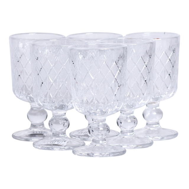Набор рюмок изготовлен из прозрачного стекла с рельефным узором в виде геометрических граней. Классическая форма с плавным переходом чаши в короткую устойчивую ножку обеспечивает удобство пользования. Благодаря плотному стеклу изделия имеют хорошую устойчивость и приятный вес в руке. Основные характеристики стеклянных рюмок: Материал: стекло; Объем: 50 мл; Верхний диаметр: 4.5 см; Нижний диаметр: 4 см; Высота: 9 см. Особенности набора рюмок для водки на ножке: Подходят для подачи водки, наливок, ликёров и настоек. Эффектный рельефный узор подчёркивает стиль сервировки. Прозрачное стекло позволяет визуально оценить напиток. Удобная форма и устойчивость — комфорт в использовании. Уместны как в повседневной, так и в праздничной обстановке. Подходят для классической и винтажной сервировки стола. Совместимы с мытьём в посудомоечной машине — легко ухаживать. Рюмки подходят для подачи крепких алкогольных напитков - водки, наливок, ликеров или настоек. Рельефная поверхность не только добавляет эстетики, но и предотвращает выскальзывание из рук. Прозрачное стекло позволяет оценить цвет напитка, а компактный размер соответствует стандартам сервировки. Рюмки удобно использовать как в повседневном обиходе, так и во время праздничных событий. Изделия легко моются вручную или в посудомоечной машине. Практичное решение для сервировки напитков в классическом стиле.