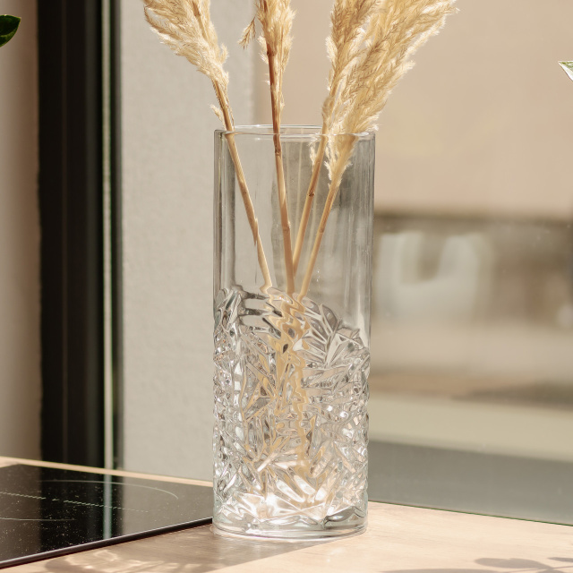 Прозрачная ваза изготовлена из высококачественного стекла, ее особенностью является декоративное тиснение в нижней части, что добавляет объема и текстурности внешнему виду. Изделие имеет гладкую округлую форму без острых углов и утолщенное дно для стабильности. Основные характеристики вазы для цветов Материал: стекло; Диаметр: 11 см; Высота: 29.5 см; Глубина: 27 см; Объем: 2 л. Основные преимущества стеклянной вазы Ваза подходит для разных типов цветов, а также для сухоцветов. Ваза выполнена из высококачественного стекла, что гарантирует её прочность и долговечность. Универсальность дизайна позволяет вазе гармонично вписаться в любую обстановку, будь то современная гостиная или классический офис. Благодаря сочетанию прозрачности и рельефной обработки ваза интересно взаимодействует со светом, создавая оригинальные блики. Она подходит для живых цветов, сухоцветов или как отдельный элемент декора, гармонично вписывается в современные и классические интерьеры. Практичная и эстетичная ваза подходит для ежедневного использования и праздничного оформления. За ней легко ухаживать: достаточно промыть мягкой губкой или в посудомоечной машине без агрессивных моющих средств."