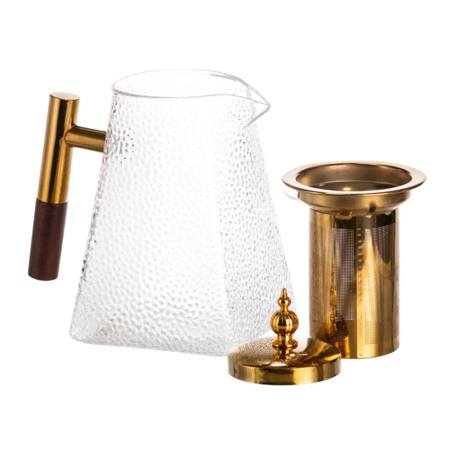 Заварочный чайник из термостойкого стекла объёмом 1 литр — это идеальное решение для тех, кто ценит эстетику, чистый вкус и комфорт в процессе чаепития. Прозрачные стенки позволяют наблюдать за процессом заваривания, а удобная металлическая ручка обеспечивает безопасное использование без риска ожогов. Характеристики стеклянного чайника для заваривания тип: заварник стеклянный с крышкой и фильтром; материал корпуса: стекло; объём: 1 литр; высота с крышкой: 19 см; высота без крышки: 15 см; диаметр дна: 10 см; диаметр горлышка: 7.5 см; ручка: эргономичная, металлическая; фильтр: встроенное ситечко; термостойкость: подходит для кипятка и горячего заваривания. Преимущества стеклянного заварника Чистый вкус чая: стекло не впитывает запахи и не влияет на аромат напитка. Встроенный фильтр: задерживает листья, обеспечивая чистую подачу. Эргономичная ручка: безопасный захват без риска обжечься. Термостойкость: устойчив к высоким температурам, подходит для кипятка. Прозрачность: вы контролируете степень заваривания в реальном времени. Эстетичный дизайн: отлично смотрится на кухне и сервировочном столе. Универсальность: подходит для чёрного, зелёного, травяного чая и цветочных сборов. Этот заварочный чайник — практичный аксессуар для повседневного и церемониального чаепития. Его гармоничное сочетание стекла и дерева создаёт атмосферу уюта и натуральной простоты. Купить заварник для чая объёмом 1 литр с деревянной ручкой можно прямо сейчас с доставкой по всей Украине. Мы обеспечиваем аккуратную упаковку, быструю отправку и гарантию качества. Добавьте изысканности и комфорта в каждый момент вашего чаепития вместе с нашим стеклянным заварником.