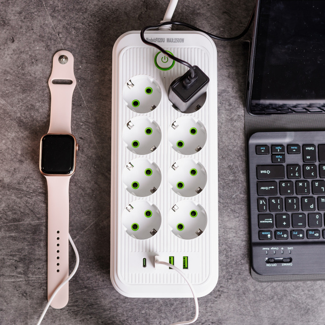 Сетевой удлинитель F20U — это практичное и эстетичное решение для подключения техники и зарядки гаджетов в одном устройстве. Восемь розеток с заземлением и четыре порта USB и Type-C обеспечивают максимальное удобство, а кабель длиной 2.8 метров позволяет устанавливать удлинитель в любом уголке комнаты. Характеристики удлинителя тип: сетевой фильтр удлинитель с USB и Type-C; количество розеток: 8 шт с заземлением; количество портов: 3 шт USB, 1 шт Type-C; длина кабеля: 2.8 метров; размер сетевого фильтра: 27×11×4 см; переключатель питания: кнопка включения/выключения на корпусе; материал: термостойкий ABS-пластик; универсальный разъём: подходит для бытовых и офисных приборов. Преимущества сетевого фильтра с USB Универсальность — подключение электроприборов и зарядка гаджетов без адаптеров. Длина кабеля 2.8 м — легко размещать в любой части помещения. Защита от перегрузки — встроенный предохранитель и качественные материалы. Быстрый доступ к питанию — кнопка отключения позволяет полностью обесточить удлинитель. Компактный и стильный — впишется в современный интерьер дома или офиса. Незаменим в ситуациях с перебоями электроэнергии: можно быстро отключить оборудование, избежать скачков напряжения и оставить зарядку включенной для мобильных устройств. Купить сетевой удлинитель с USB с доставкой по всей Украине. Закажите сетевой фильтр удлинитель с USB и обеспечьте стабильную и безопасную работу всей вашей техники — дома и на работе.