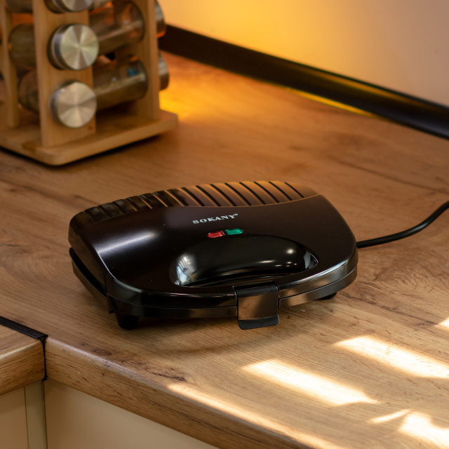 Электрогриль Sokany SK-116 — это универсальный и компактный прибор для приготовления сочного мяса, сэндвичей, бургеров, овощей и рыбы. Благодаря мощности 750 Вт, антипригарному покрытию и встроенному термостату вы получите результат быстро и без лишнего жира. Устройство безопасно в использовании, легко чистится и идеально подойдёт как для кухни, так и для офиса. Характеристики электрогриля Sokany SK-116 тип устройства: электрогриль / гриль-пресс / сэндвичница; мощность: 750 Вт; размер: 23×22.5×6.5 см; размер пластин: 21.5×12.5 см; длина шнура питания: 0.7 м; нагрев: двухсторонний (верхняя и нижняя плита); термостат: есть (поддержание оптимальной температуры); антипригарное покрытие: есть; индикаторная лампа: да; защита от перегрева: встроенная автоматическая; тип корпуса: Bake Lite (термостойкий пластик), “Cool Touch” — не нагревается снаружи; лёгкая очистка: достаточно протереть после готовки. Преимущества гриля Sokany SK-116 Быстро нагревается и готовит с обеих сторон одновременно. Без масла — антипригарное покрытие делает приготовление полезным. Подходит для сэндвичей, мяса, овощей, рыбы и панини. Прочный и безопасный корпус с охлаждаемыми ручками. Компактный и лёгкий — удобно хранить и переносить. Идеальный выбор для быстрой готовки в домашних условиях, в общежитии или офисе. Электрогриль работает от обычной розетки 220В и полностью автономен — незаменим при ограниченном доступе к кухонной технике. Купить электрогриль Sokany SK-116 можно с доставкой по всей Украине. Мы отправим товар в день заказа, бережно упакуем и предложим удобные способы оплаты — включая наложенный платёж.