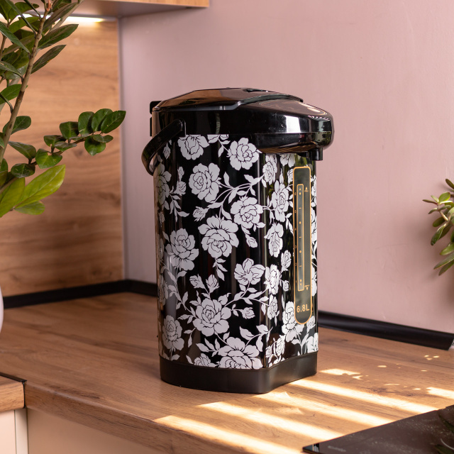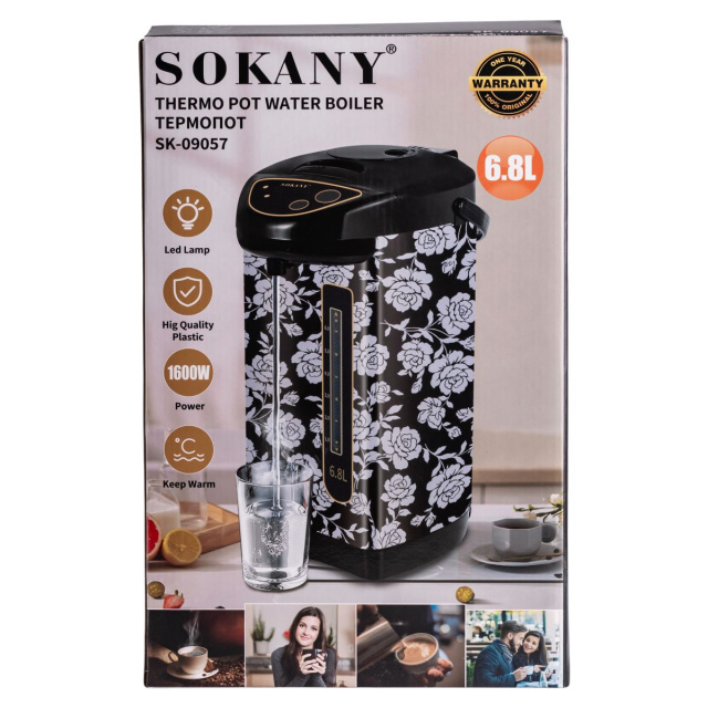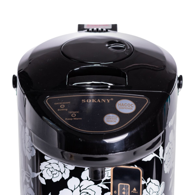 Термопот - это электрический бытовой прибор, который сочетает в себе основные функции электрического чайника и термоса. Встроенный нагревательный элемент термопота позволяет получать горячую воду, а стенки имеют улучшенную теплоизоляцию, благодаря которой устройство способно поддерживать температуру содержимого с минимальными затратами электроэнергии. Термопот Sokany обеспечит вас горячей водой в течение длительного времени. Благодаря функции поддержания температуры воды, вы всегда сможете наслаждаться горячим напитком в любое удобное время, без необходимости нагревать воду заново. Это делает термочайник отличным выбором как для домашнего использования, так и для офиса, кафе или столовой. Основные характеристики термопота размер термоса 28×20×39 см; мощность 1600 Вт; объем 6.8 литра; длина шнура питания 0.9 м; металлический корпус; внутренний бак из нержавеющей стали; фильтр от накипи; индикатор уровня воды. Компактный и стильный дизайн термо чайника легко подойдет для любого интерьера кухни, кафе или офиса. Термопот Sokany - это надежный и удобный чайник, который поможет вам получить горячую воду в любое время с минимальными усилиями.