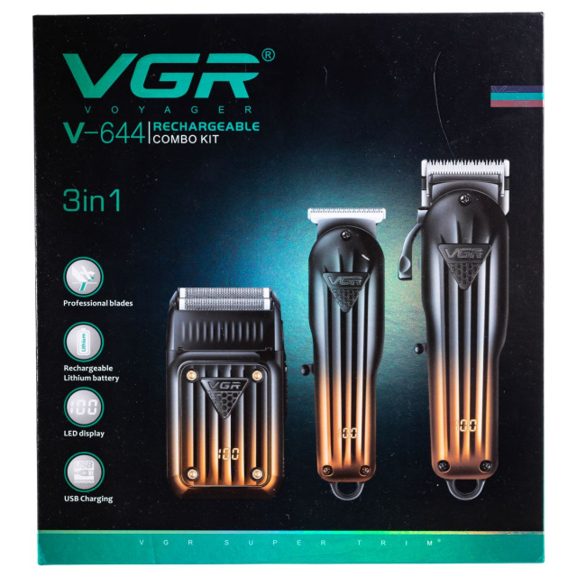 Комплект для стрижки волос и бороды VGR 3 в 1 V-644 - это универсальный набор для ухода за волосами и бородой, который сочетает в себе аккумуляторную машинку для стрижки, триммер и электробритву шейвер. Машинка оснащена мощным роторным мотором с частотой вращения 6400 оборотов в минуту и ножевым блоком шириной 46 миллиметров из нержавеющей стали, что обеспечивает чистый и точный срез. Встроенный LED-дисплей информирует о заряде аккумулятора, который обеспечивает до 200 минут непрерывной работы. Полная зарядка занимает 3 часа, а также машинка может работать непосредственно от сети. Характеристики набора для стрижки волос и бороды VGR V-644 Машинка для стрижки материал ножей: нержавеющая сталь; тип питания: сеть, аккумулятор; размер: 17×5×4 см; ширина Т-образного ножевого блока: 46 мм емкость аккумулятора: 2000 mAh; время работы: 200 минут; время зарядки: 3 часа; 6 насадок: 1.5,3,4.5,6,10,13 мм; мощность: 5 В. Триммер материал ножа: нержавеющая сталь; тип питания: сеть, аккумулятор; размер: 14.5×4.5×3 см; ширина ножевого блока: 40 мм емкость аккумулятора: 600 mAh; время работы: 120 минут; время зарядки: 2 часа; 4 насадки: 1,2,3,4 мм; мощность: 5 В. Триммер комплекта имеет нож Т-образной формы шириной 40 миллиметров, также изготовленный из нержавеющей стали, и работает от отдельного Li-Ion аккумулятора емкостью 600 мАч, который лишен эффекта памяти и обеспечивает до 120 минут автономной работы. Данная модель дополнена четырьмя насадками разной длины для точного моделирования бороды и волос, а удобный LED-дисплей отображает информацию о заряде батареи. Зарядка триммера происходит за 2 часа через USB-C кабель, что добавляет удобства в использовании. Шейвер система бритья: сеточная, 2 подвижные сетки; тип питания: сеть, аккумулятор; размер: 10.5×6×3 см; емкость аккумулятора: 600 mAh; время работы: 80 минут; время зарядки: 1.5 часа; мощность: 5 В. Электробритва шейвер имеет сеточную систему с двумя подвижными сетками из нержавеющей стали, которые идеально повторяют контуры лица, обеспечивая гладкое и комфортное бритье без раздражений. Она работает от литий-ионного аккумулятора на 600 мАч, обеспечивающего до 80 минут автономной работы и заряжается всего за полтора часа. LED-дисплей показывает уровень заряда аккумулятора, а в комплекте есть защитный чехол и документация. VGR V-644 — это компактный, функциональный и практичный набор, идеально подходящий как для профессионального использования в барбершопе, так и для качественного домашнего ухода. Данный товар находится в герметичной блистерной упаковке, поэтому, обязательно проверьте целостность блистера при получении на почте. В случае обнаружения дефектов упаковки, пожалуйста, сообщите нам сразу для замены товара. После нарушения целостности блистера товар не подлежит возврату. При обнаружении у товара заводских неисправностей вы можете вернуть или заменить его в течение 14 дней.