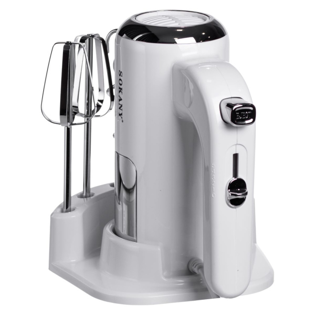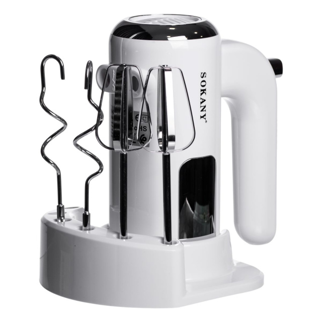 Ручной миксер Sokany SK-02025 — это удобный и функциональный кухонный прибор для быстрого взбивания кремов, замеса теста и других кулинарных задач. Благодаря мощности 800 Вт и скоростным режимам вы сможете точно подстроить работу устройства под любые ингредиенты. Компактный и эргономичный, он легко помещается в любой кухонный ящик и станет вашим надежным помощником как дома, так и в профессиональной среде. Характеристики миксера Sokany SK-02025 мощность 800 Вт; размер 19×16×19 см; длина шнура питания 1 м; режим турбо; насадки: 2 венчика, 2 крюка для теста; материал корпуса - пластик. Преимущества ручного миксера Sokany Высокая мощность 800 Вт — быстрое и равномерное смешивание и замешивание ингредиентов. Две пары насадок — универсальность для взбивания и приготовления теста. Компактный и лёгкий корпус — удобно хранить и использовать. Простой уход — насадки легко снимаются и моются под проточной водой. Сферы применения домашняя выпечка и ежедневная кулинария; HoReCa: мини-пекарни, кондитерские, кафе; подарок начинающим и опытным кулинарам; приготовление кремов, муссов, теста и соусов. Миксер ручной Sokany — это надежность, мощность и простота в одном устройстве. Закажите ручной кухонный миксер с доставкой по всей Украине.