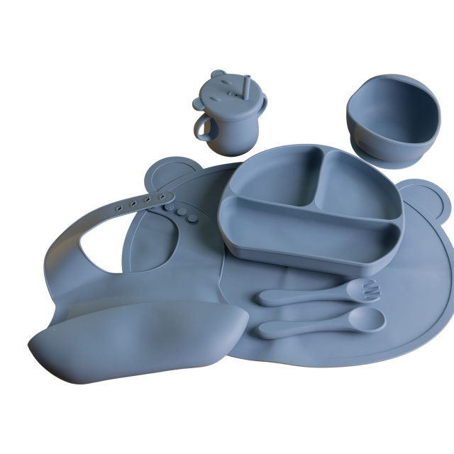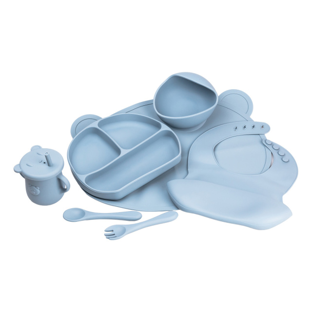 Набор включает в себя качественную, безопасную и удобную для маленьких детских рук посуду. Тарелка имеет 3 раздела для подачи разнообразных блюд одновременно, и идеально подойдет для того, чтобы обеспечить разнообразный и сбалансированный прикорм. Комплектация набора силиконовой посуды для кормления ребенка Коврик. Тарелка менажница на три секции. Пиала. Кружка поилка с ручками, крышкой и трубочкой. Слюнявчик. Ложка. Вилка. Основные характеристики набора для кормления детей Размеры тарелки 21.5 х 18 см. Высота тарелки 2.5 см. Высота стаканчика 11 см. Диаметр стаканчика 8 см. Высота пиалы 7.5 см. Ширина пиалы 11 см. Вы можете купить детскую посуду и другие товары по доступной цене с доставкой по Украине в нашем интернет-магазине.