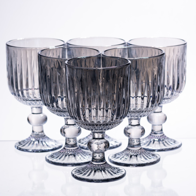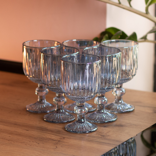 Набор из шести бокалов для вина на ножке — идеальный выбор для праздничных застолий, фуршетов и повседневного использования. Элегантная форма чаши помогает сохранить насыщенную игристость напитка, а рельефная поверхность обеспечивает надежный и комфортный захват. Бокалы выполнены из прочного толстого стекла, устойчивого к сколам и царапинам. Их дизайн отлично дополнит любую сервировку, а прочная ножка обеспечивает стабильность и безопасность при использовании. Основные характеристики набора бокалов для вина: Набор: 6 штук; Объем: 220 мл; Высота: 14 см; Верхний диаметр: 7.5; Нижний диаметр: 6.5; Материал: стекло; Поверхность: рельефная (ребристая); Форма: чаша на ножке. Этот набор бокалов для вина сочетает в себе стиль, практичность и надёжность, что делает его отличным выбором для любых событий — от торжественных праздников до уютных домашних вечеров. Благодаря прочному стеклу и классическому дизайну, бокалы сохранят свою привлекательность и функциональность даже при ежедневном использовании. Такой набор обязательно станет украшением вашего стола и приятным дополнением к любой сервировке, обеспечивая комфорт и удовольствие каждому гостю.