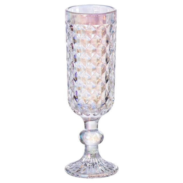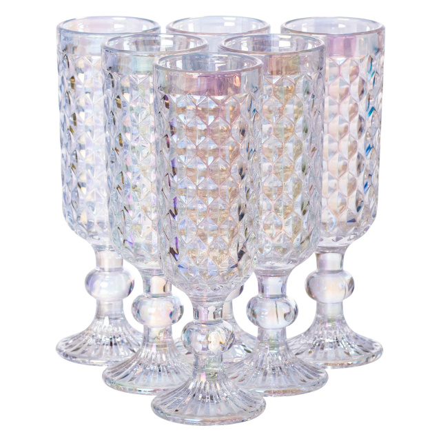 Набор бокалов для шампанского изготовлен из прочного прозрачного стекла с выразительной ребристой фактурой. Классическая форма и универсальный дизайн делают их идеальными как для подачи игристых вин, так и для коктейлей или воды — как в домашних условиях, так и в заведениях общественного питания. Толстое стекло обеспечивает не только прочность и устойчивость к повреждениям, но и делает бокалы подходящими для частой мойки, включая посудомоечную машину. А благодаря сочетанию лаконичной формы и текстурированной поверхности, они легко вписываются в любой стиль сервировки — от классики до минимализма. Основные характеристики набора бокалов для шампанского Набор: 6 штук; Объем: 160 мл; Высота: 18 см; Верхний диаметр: 5 см; Нижний диаметр: 6 см; Материал: стекло. Этот набор бокалов для шампанского станет удачным выбором для тех, кто ценит сочетание стиля, удобства и качества. Благодаря универсальному дизайну и прочному исполнению, бокалы подойдут как для повседневного использования, так и для особых случаев. Они не только украсят ваш стол, но и сделают каждую встречу с близкими ещё более тёплой и запоминающейся.
