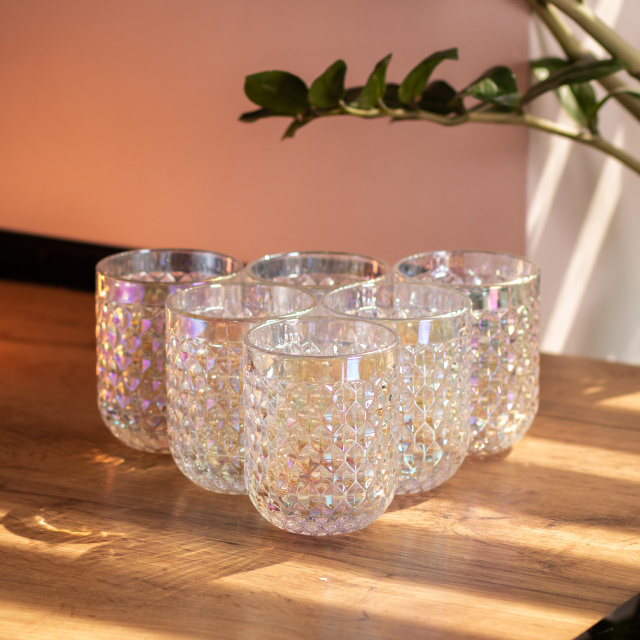 Набор стеклянных стаканов с рельефной поверхностью предназначен для повседневного использования дома, в офисе или заведениях общественного питания. В комплект входит 6 одинаковых стаканов, выполненных из прозрачного стекла без дополнительного декора. Рельефная фактура улучшает сцепление с рукой, особенно при подаче охлаждённых напитков, на которых может образовываться конденсат. Компактный размер стаканов позволяет удобно хранить их в шкафу и легко мыть как вручную, так и в посудомоечной машине. Лаконичный дизайн и универсальная форма делают эти стаканы практичным выбором для повседневного использования и сервировки стола в минималистичном стиле. Основные характеристики: Материал: стекло; Объем: 250 мл; Верхний диаметр: 7 см; Нижний диаметр: 4.5 см; Высота: 9 см. Этот набор стаканов станет удачным дополнением к повседневной посуде — универсальный, удобный и практичный. Простая форма и функциональность делают его отличным выбором как для дома, так и для офисной кухни или кафе.