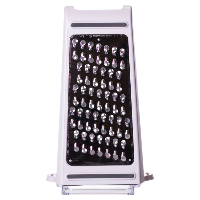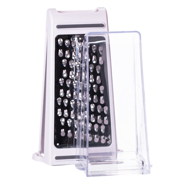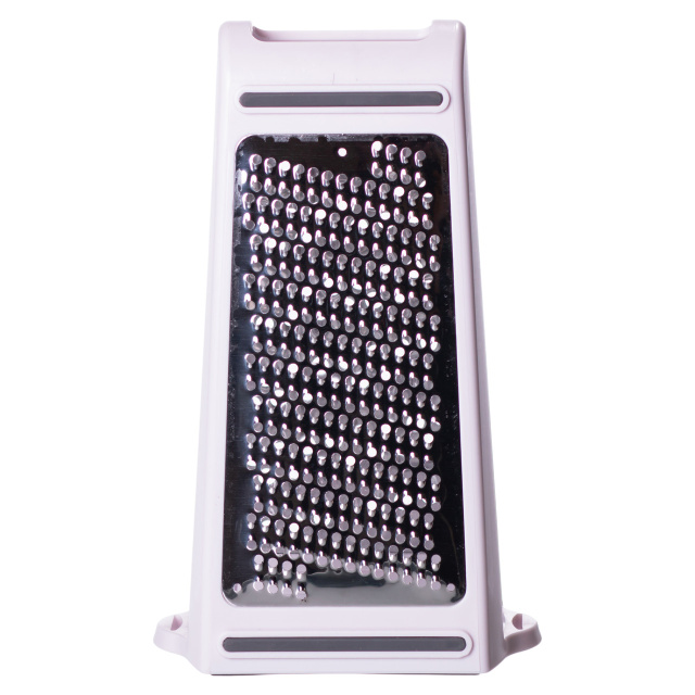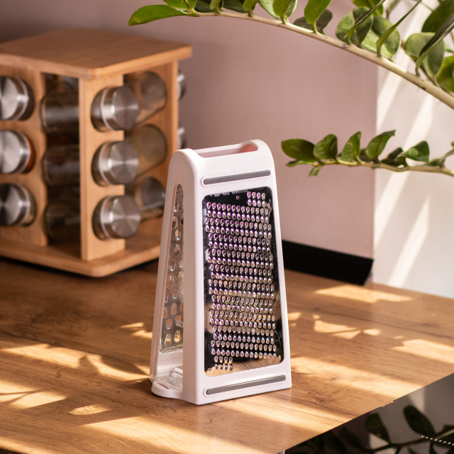 Двусторонняя кухонная терка с контейнером — практичное и удобное решение для быстрой подготовки ингредиентов. Отлично подходит для натирания, нарезки и измерения продуктов — от овощей и фруктов до различных сортов сыра и сыпучих ингредиентов. Корпус изготовлен из первоклассной нержавеющей стали, устойчивой к коррозии и запахам. Терка оснащена двумя режущими поверхностями: для крупной и мелкой стружки. В комплект входит пластиковый контейнер объемом 600 мл, который плотно крепится к основанию терки. После использования терку легко очистить вручную или в посудомоечной машине. Основные характеристики ручной терки из нержавейки: Материал терки: нержавеющая сталь. пластик; Материал ручки: пластик; Размер: 11×8×22 см; Количество рабочих сторон: 2; Объем контейнера: 600 мл; Ширина рабочей поверхности: 7 см; Длина рабочей поверхности: 13.5 см; Противоскользящее основание: есть. Особенности терки для овощей с контейнером: 2 рабочие поверхности: для крупной и мелкой стружки; Контейнер с плотно фиксирующимся основанием — продукты сразу собираются без беспорядка; Корпус из нержавеющей стали и пластика — не ржавеет, не впитывает запахи; Подходит для мытья в посудомоечной машине; Идеальна для твердого сыра, овощей, фруктов. Эта многофункциональная терка станет незаменимым помощником на вашей кухне. Она сочетает в себе удобство, продуманный дизайн и качество материалов, обеспечивая лёгкость в приготовлении различных блюд. Благодаря контейнеру с мерной шкалой, вы не только экономите время, но и поддерживаете порядок на рабочей поверхности. Надёжная, компактная и простая в уходе — идеальный выбор для тех, кто ценит практичность и комфорт в каждом кухонном аксессуаре.