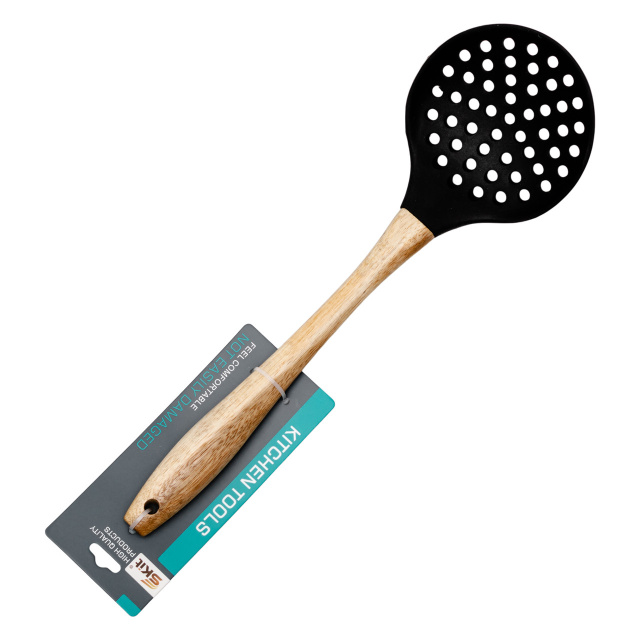 Кухонная шумовка с силиконовой рабочей частью — это практичный и универсальный аксессуар, необходимый на каждой кухне при варке, жарке и приготовлении первых блюд. Благодаря мягкому, но прочному силикону, шумовка деликатно взаимодействует с посудой, не повреждая антипригарное покрытие. Она идеально подходит для снятия пены, отцеживания макарон, овощей, вареников и других продуктов из бульона или масла. Рабочая часть выполнена из термостойкого силикона, устойчивого к воздействию высоких температур и пищевых кислот. Материал не впитывает запахи, не окрашивается от продуктов и легко очищается после использования. Длинная ручка из натурального дерева обеспечивает комфортный захват, не нагревается и придаёт шумовке эстетичный внешний вид. Классическое сочетание дерева и матового силикона делает аксессуар не только функциональным, но и стильным элементом кухонного интерьера — он подойдёт для кухни в любом стиле и будет уместен как дома, так и в заведениях общественного питания. Основные характеристики ложки-шумовка для снятия пены: Размер: 33×10см; Длина: 33 см; Материал рабочей части: силикон; Материал ручки: дерево. Шумовка с деревянной ручкой и силиконовой чашей — это удачное сочетание современных материалов и классического дизайна. Она удобна в использовании, безопасна для посуды и станет надёжным помощником в приготовлении самых разных блюд каждый день.