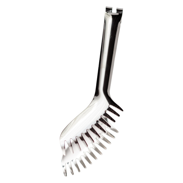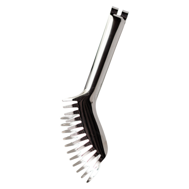 Сервировочные щипцы с элегантным лаконичным дизайном — универсальный и стильный аксессуар, который прекрасно дополнит любую сервировку. Они сочетают в себе эстетику и функциональность, подойдут как для повседневного использования, так и для праздничных застолий, банкетов, фуршетов, кейтерингу и других торжественных мероприятий. Рабочая часть щипцов имеет специальную форму с зубчатыми "губками", которые обеспечивают надёжный захват и позволяют аккуратно перекладывать еду, не повреждая её структуру. Это делает щипцы особенно удобными для подачи пасты, гарниров, овощных салатов, рыбных и мясных блюд. Благодаря продуманной форме, пища не выскальзывает, а подача выглядит аккуратно и опрятно. Основные характеристики кухонных щипцов: Размер: 23×4 см; Материал: щипцов нержавеющая сталь. Щипцы выполнены из качественных материалов, легко очищаются, устойчивы к коррозии и долговечны. Их лаконичный внешний вид делает аксессуар уместным как на торжественном столе, так и на кухне в процессе готовки. Лёгкие, удобные и надёжные — эти сервировочные щипцы станут отличным дополнением к вашему кухонному арсеналу.