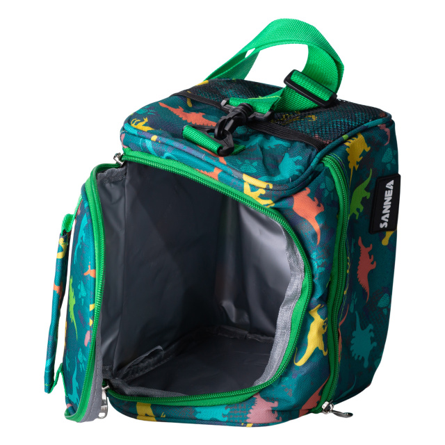 Практичная и милая термосумка с оригинальным дизайном станет отличным выбором для школы, поездок и пикников. Она идеально подходит для хранения ланч-боксов, фруктов, напитков и других перекусов, требующих поддержания температуры. Благодаря универсальному дизайну сумка понравится как детям, так и взрослым. Изготовлена из качественных и безопасных материалов: внешняя часть выполнена из прочной ткани полиэстер, а внутри — пленка PEVA, пригодная для контакта с пищей. В качестве утеплителя используется вспененный полиэтилен, который помогает сохранять тепло или холод в течение нескольких часов. Детская термосумка имеет термоотделение и карман для хранения дополнительных аксессуаров, закусок или салфеток. Боковые сетчатые карманы подходят для бутылки с водой иди других аксессуаров. Удобный ремень регулируется по длине, что позволяет носить сумку как через плечо, так и в руке. Мягкая ручка обеспечивает дополнительный комфорт при транспортировке. Основные характеристики термосумки детской: Размеры: 22×15×20 см; Материал: полиэстер+EPE+PEVA; Застежка: молния; Корпус: мягкий; Ручки: верхняя ручка для переноски и плечевой ремень; Особенности: водонепроницаемость, термоизоляция, стильный внешний вид. Особенности сумки для еды в школу: Поддержание температуры до 4–5 часов; Герметичный и водонепроницаемый материал; Удобный регулируемый ремень и мягкая ручка; Боковой карман для бутылки или других аксессуаров; Легкий уход: легко моется и быстро сохнет. Для чего подойдет термосумка для школьника? Школьных обедов; Поездок и путешествий; Пикников и прогулок; Детских садов и кружков; Хранения перекусов и напитков в дороге. Этот ланч бег сочетает в себе практичность, вместительность и оригинальный внешний вид. Термосумка станет надежным помощником для хранения и транспортировки еды, сохраняя её свежесть и температуру в течение нескольких часов. Благодаря продуманной конструкции и универсальному дизайну, сумка подходит для разных ситуаций — от школьных обедов до дальних поездок. Удобство, стиль и функциональность делают её отличным выбором для ежедневного использования.