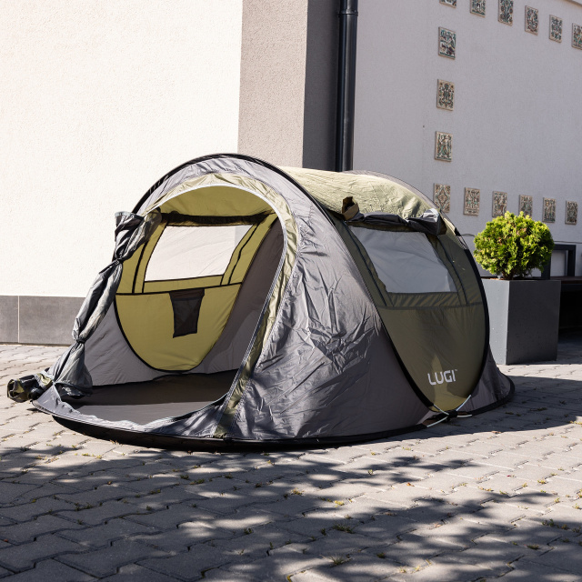 Легкая палатка тоннельного типа с автоматической системой установки "Pop-Up" - отличный выбор не только для пикников и кемпинга, но также для рыбалки или другого отдыха на природе. Палатка имеет простую конструкцию, дуги уже вшиты в каркас, что позволяет разложить ее за считанные секунды. Среди преимуществ, которые выгодно отличают такую палатку от многих других - вентиляция 360°. На боковых стенках расположены большие окна с москитными сетками, которые обеспечивают отличную циркуляцию воздуха. Входы в палатку также продублированы москитной сеткой. Палатка изготовлена из Оксфорда, что обеспечивает высокую водонепроницаемость и блокирует ультрафиолет. Благодаря этому в палатке сохраняется комфортная температура даже под прямыми солнечными лучами. Основные характеристики палатки для туризма: Количество спальных мест: 2 ; Внешний размер палатки: 245×145×100 см; Внутренний размер палатки: 240×145×100 см; Размер в сложенном состоянии: 75×75×5 см; Внешний материал: оксфорд; Материал пола: оксфорд; Внутренний материал палатки: оксфорд; Система раскладывания: самораскладная "Pop-Up"; Сезонность: лето; Наличие чехла: есть; Комплектация: палатка, 4 веревки, 8 колышек, сумка-чехол для транспортировки. Обратите внимание! Проверяйте целостность палатки и элементов конструкции перед каждым использованием для обеспечения собственной безопасности. Устанавливайте палатку на ровном участке без камней, веток и острых предметов, которые могут повредить ткань. Устанавливайте палатку на безопасном расстоянии от костра. Чтобы избежать дискомфорта во время сна, для установки выбирайте максимально плоский участок, покрытый травой или песком. Если местность холмистая, ложитесь ногами вниз по склону. Если во время кемпинга собирается дождь, выкопайте дренажную канаву вокруг палатки для отвода воды. Канава должна располагаться максимально близко к внешнему краю палатки. Для дополнительной влагозащиты используйте футпринт. Уход за палаткой Очистка палатки от загрязнений после использования - важный аспект, который напрямую влияет на срок и качество ее службы. Чтобы сохранить снаряжение: Тщательно очистите дно и нижнюю часть палатки от песка и загрязнений. Чтобы избежать появления плесени, не складывайте палатку до полного высыхания или просушите ткань при первой возможности. Не используйте моющие средства для очистки, чтобы избежать потери водонепроницаемых свойств. Не стирайте палатку в стиральной машине. Храните палатку в сухом месте.