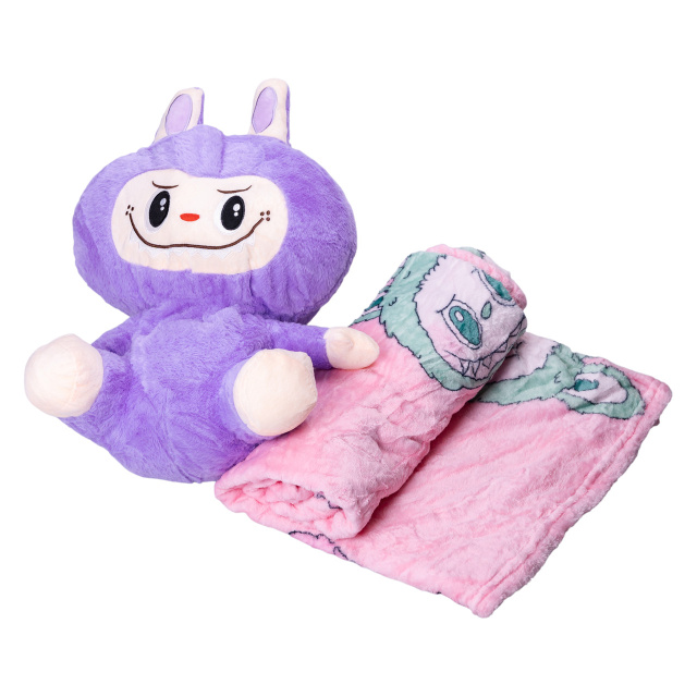UA MarketОдесаПотребенькиТовари та послугиДомашний текстильПодушки-игрушкиМягкая игрушка-плед, подушка 3 в 1 Лабубу 50 см Фиолетовый ТМ COLORFUL HOME LAB2V