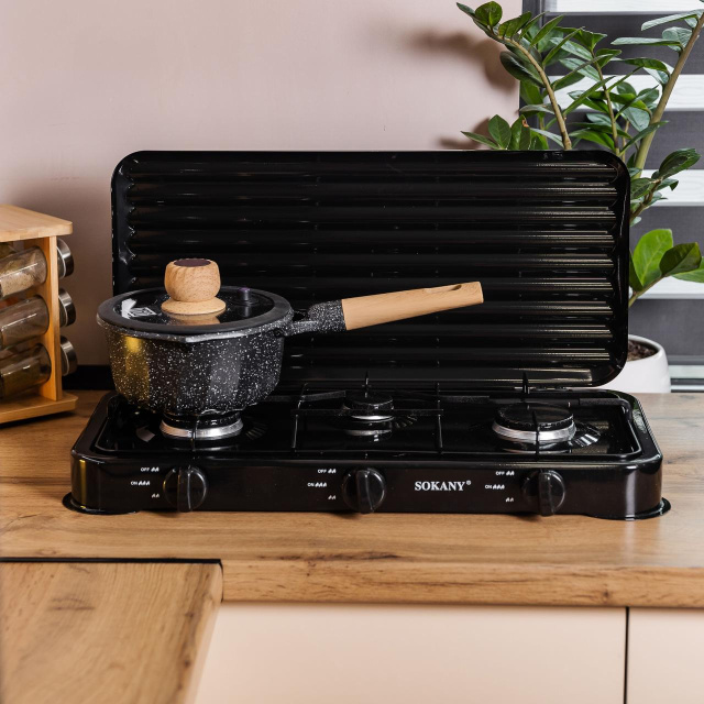 Настольная газовая плита на 3 конфорки Sokany 5.5 кВт Черная Lugi SK-6003B