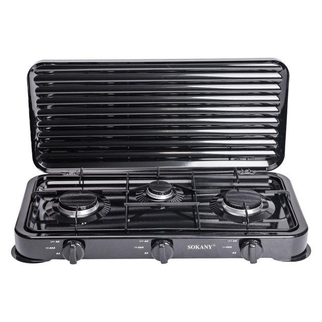 UA MarketОдесаПотребенькиТовари та послугиТехника для кухниГазовые плиты и электроплитыНастольная газовая плита на 3 конфорки Sokany 5.5 кВт Черная Lugi SK-6003B