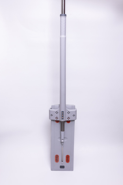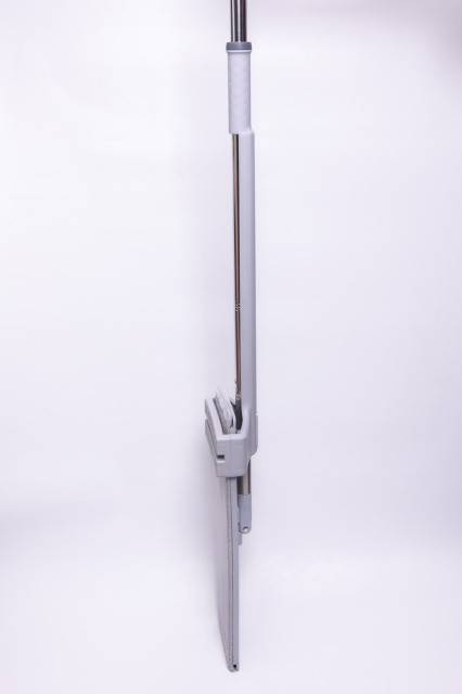 Швабра предназначена для регулярной уборки твердых покрытий — плитки, ламината, паркета и линолеума. Оснащена прямоугольной платформой с четырьмя оранжевыми резиновыми вставками, которые фиксируют насадку и предотвращают её скольжение. Платформа выполнена из прочного пластика, имеет низкий профиль и шарнирное соединение, что позволяет вращаться и наклоняться под разными углами — удобно для уборки под мебелью и в труднодоступных углах. Характеристики швабры с телескопической ручкой для пола: Вес: 0,9 кг; Габариты швабры: высота 138 см, насадка 45×15 см; Материал: пластик + нержавеющая сталь; Комплектация: 2 сменные насадки. Ручка состоит из трёх секций: верхняя часть — гладкий пластиковый грип; средняя — нержавеющая сталь с глянцевым покрытием; нижняя — пеноматериал для удобного захвата. Телескопическая конструкция обеспечивает регулировку длины ручки, что позволяет адаптировать её под рост пользователя или вид уборки. Соединения между секциями выполнены из пластика, что делает конструкцию надёжной и лёгкой в сборке. Ключевые особенности швабры для пола: предназначена для плитки, ламината, паркета, линолеума; удобная телескопическая ручка; шарнирное соединение платформы для уборки в углах; совместимость с плоскими насадками; подходит для сухой и влажной уборки. Швабра поставляется без дополнительных аксессуаров, но совместима с большинством стандартных насадок для плоских платформ. Подходит для сухой и влажной уборки. Благодаря простой конструкции и универсальному дизайну легко вписывается в домашний интерьер и хранится в вертикальном положении. Рекомендуется для дома и небольших офисных помещений.