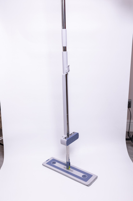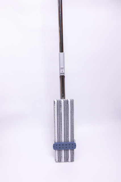 Швабра с вертикальной камерой для отжима Швабра с вертикальной камерой для отжима предназначена для эффективной уборки твердых поверхностей в домашних и коммерческих условиях. Оснащена телескопической ручкой из трех сегментов: верхний — с отверстием для подвешивания, средний — металлический и регулируемый по длине, нижний — пластиковый с фиксатором для насадки. Конструкция позволяет адаптировать длину ручки под рост пользователя и тип уборки. Характеристики швабры с вертикальной камерой для отжима: Вес: 0,8 кг; Габариты швабры: высота 136 см, насадка 43×13 см; Материал: пластик + нержавеющая сталь. Вертикальная камера для отжима обеспечивает механическое удаление влаги с насадки без контакта рук с водой. Камера имеет устойчивую основу, поддерживающую равновесие швабры в вертикальном положении. Насадка расположена внутри корпуса, нижняя часть выступает за пределы платформы, что обеспечивает контроль площади уборки и равномерное давление на поверхность. Преимущества швабры с вертикальной камерой для отжима: эффективная уборка плитки, ламината, паркета, линолеума; телескопическая ручка с регулировкой длины; вертикальная камера для отжима без контакта рук с водой; устойчивая основа для вертикального хранения; регулируемое крепление насадки; подходит для сухой и влажной уборки; быстрая замена насадок и удобство хранения. Модель подходит для ежедневной уборки плитки, ламината, паркета и других гладких покрытий. Конструкция позволяет быстро заменять насадки, регулировать длину ручки и хранить швабру вертикально.