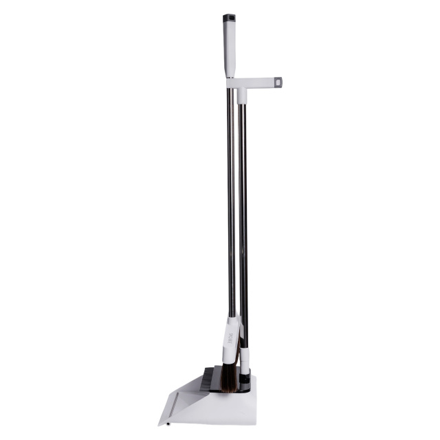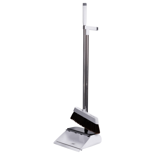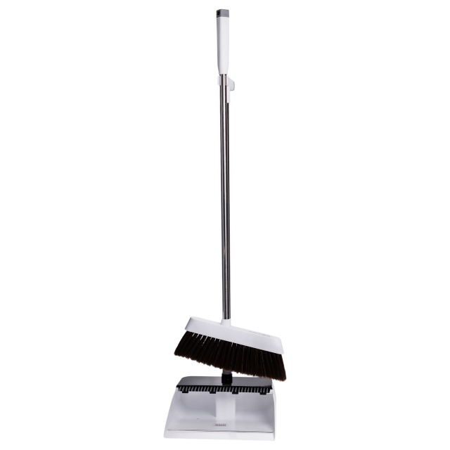 Комплект для уборки состоит из веника и совка, предназначенных для сухой уборки твердых поверхностей. Веник имеет длинную ручку с отверстием для вертикального хранения, что позволяет подвешивать его на крючок или держатель. Ручка изготовлена из металла, с пластиковыми элементами крепления, обеспечивающими легкость конструкции и удобство в использовании. Щетка веника оснащена плотными серыми ворсинками, расположенными под углом для эффективного сбора пыли и мелкого мусора. Совок имеет широкое основание с ровным краем, плотно прилегающим к полу, облегчая уборку мусора. Ручка совка соединяется с ручкой веника с помощью фиксатора, что позволяет хранить комплект в собранном виде компактно и без лишнего пространства. Основные характеристики комплекта для уборки, веника и совка: Размер: 26×24×103 см; Размер щетки: 30 см; Длина ручки совка: 87 см; Длина ручки щетки: 90 см; Материал совка: пластик; Материал веника: полипропилен; Наличие зубцов на совке: да; Держатель для щетки: да. Основные преимущества веника и совка на длинной ручке: Удобство в использовании без лишних наклонов и нагрузки на спину. Подходит для уборки различных напольных покрытий. Компактное хранение благодаря продуманной конструкции. Лёгкий и практичный дизайн для ежедневного применения. Изготовлены из прочных и долговечных материалов. Комплект подходит для повседневного использования в домашних условиях, офисах или небольших коммерческих помещениях. Благодаря простой конструкции и возможности вертикального хранения, набор удобен в транспортировке и не нуждается в дополнительных аксессуарах.
