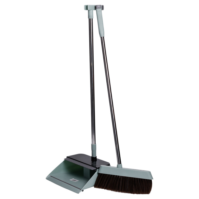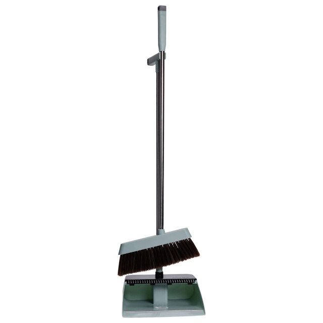 Комплект для уборки состоит из веника и совка, предназначенных для сухой уборки твердых поверхностей. Веник имеет длинную ручку с отверстием для вертикального хранения, что позволяет подвешивать его на крючок или держатель. Ручка изготовлена из металла, с пластиковыми элементами крепления, обеспечивающими легкость конструкции и удобство в использовании. Щетка веника оснащена плотными серыми ворсинками, расположенными под углом для эффективного сбора пыли и мелкого мусора. Совок имеет широкое основание с ровным краем, плотно прилегающим к полу, облегчая уборку мусора. Ручка совка соединяется с ручкой веника с помощью фиксатора, что позволяет хранить комплект в собранном виде компактно и без лишнего пространства. Основные характеристики комплекта для уборки, веника и совка: Размер: 26×24×103 см; Размер щетки: 30 см; Длина ручки совка: 87 см; Длина ручки щетки: 90 см; Материал совка: пластик; Материал веника: полипропилен; Наличие зубцов на совке: да; Держатель для щетки: да. Основные преимущества веника и совка на длинной ручке: Удобство в использовании без лишних наклонов и нагрузки на спину. Подходит для уборки различных напольных покрытий. Компактное хранение благодаря продуманной конструкции. Лёгкий и практичный дизайн для ежедневного применения. Изготовлены из прочных и долговечных материалов. Комплект подходит для повседневного использования в домашних условиях, офисах или небольших коммерческих помещениях. Благодаря простой конструкции и возможности вертикального хранения, набор удобен в транспортировке и не нуждается в дополнительных аксессуарах.